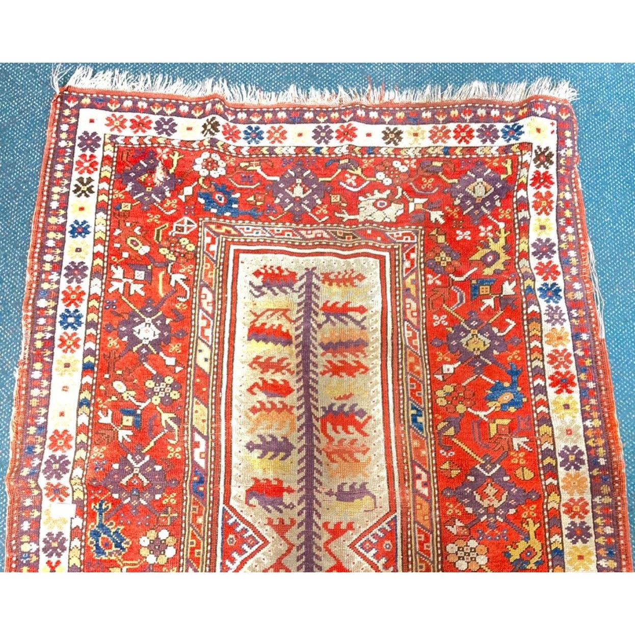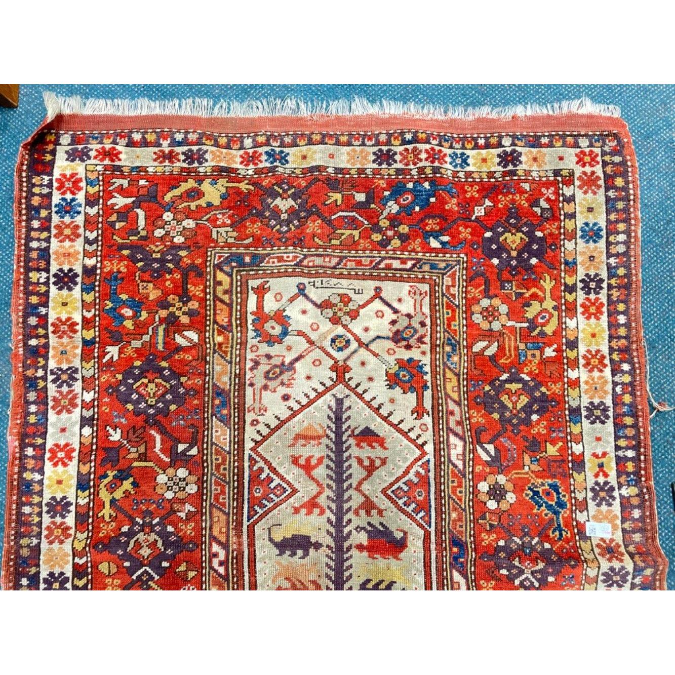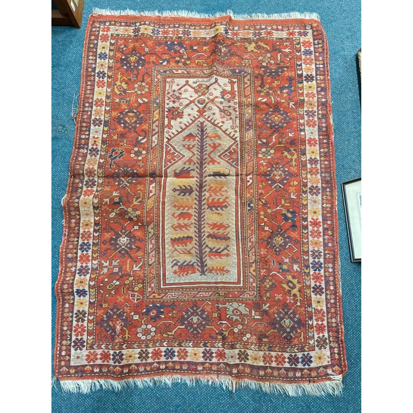 A handmade INDIAN rug in warming shades of red and cream 150x105cm, slightly frayed at edgesApprox 1 pieces