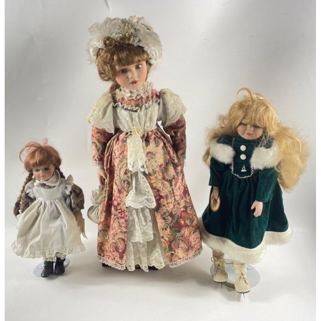 A collection of ALBERON DOLLS to include ROSEMARY, KATHERINE, BONNIE, MANDY, LISA, LILLIAN plus one wrapped up for the winter cold in green velvet, and one girl grey and pinkApprox 8 pieces