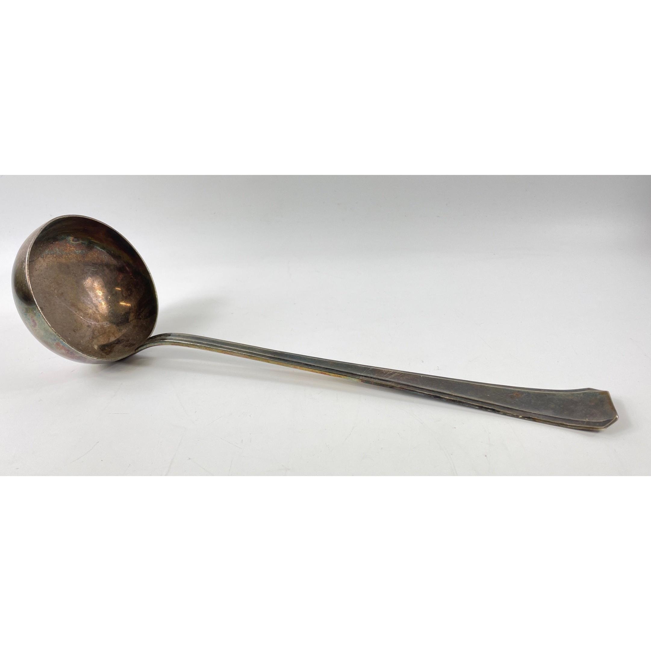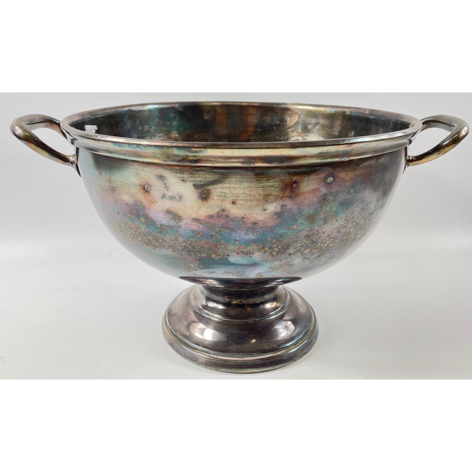 A BEAUTIFUL VINTAGE 'white metal' punch bowl and ladle - a fantastic statement piece for any dinner party! - dimensions 32cm diameter(incl the handles) x 18cm height approx - and a large stout 'white metal' serving ladle - dimensions 30cm length approx
