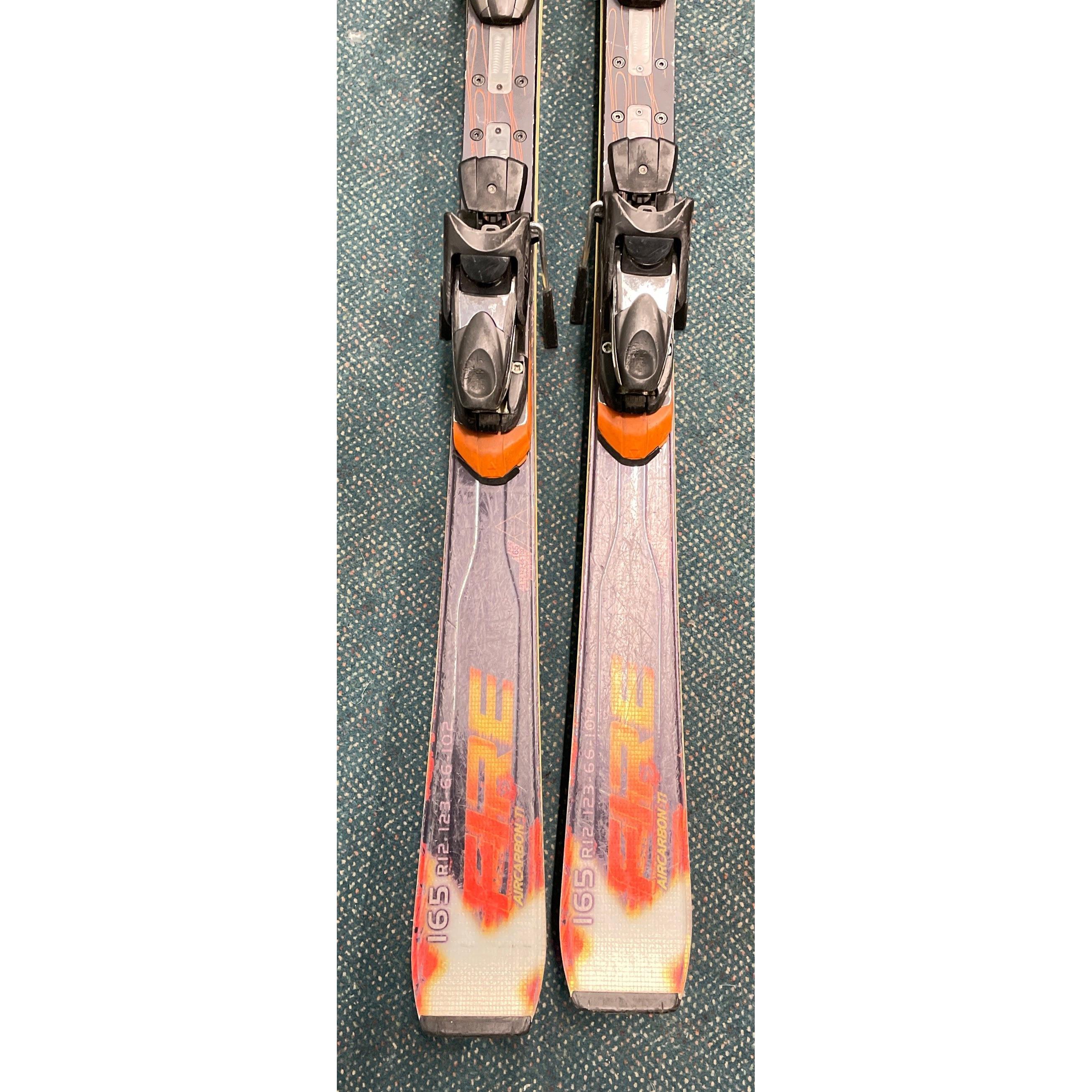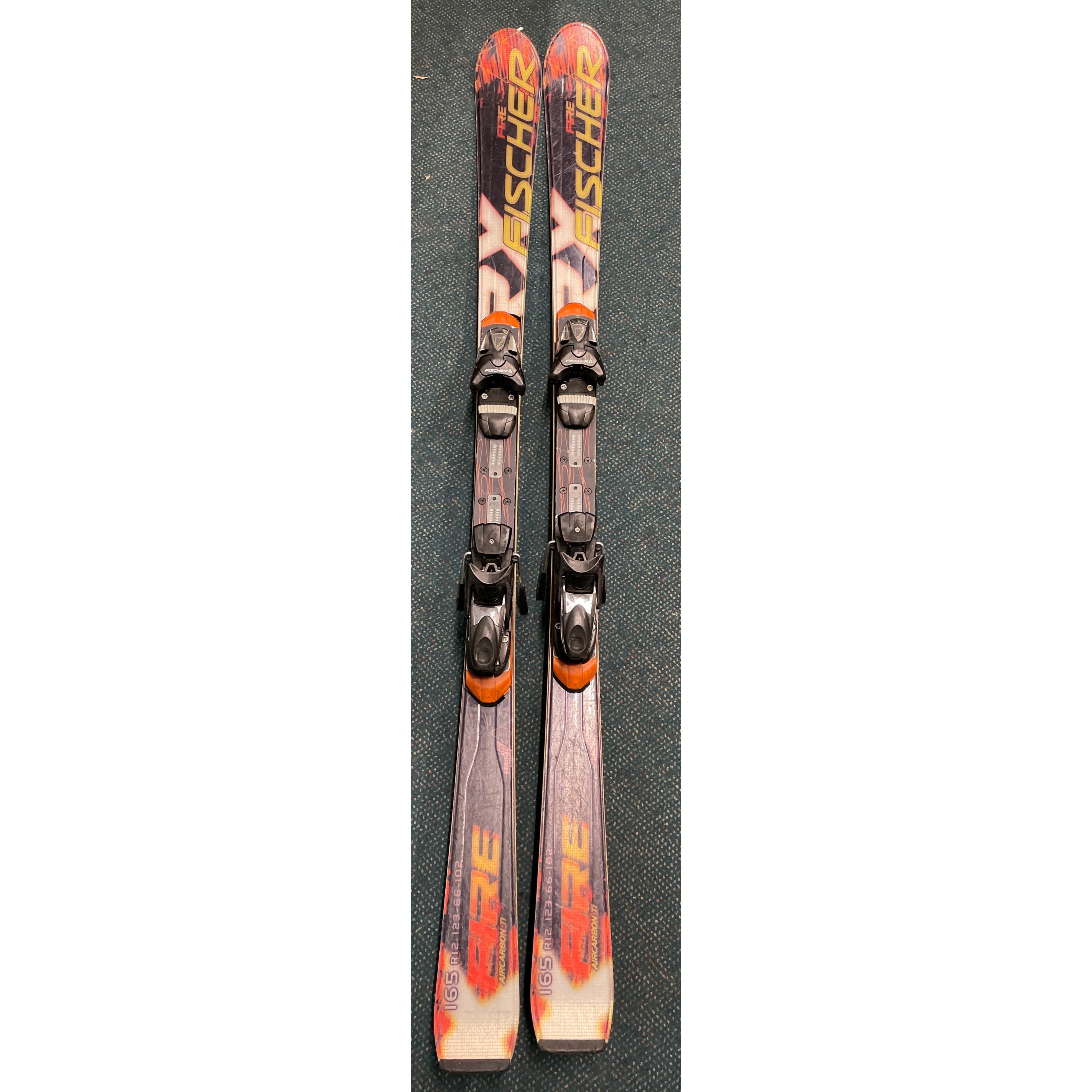 A pair of 165cm FISCHER FIRE skis with mounts within a Salomon carry bagApprox 1 pieces