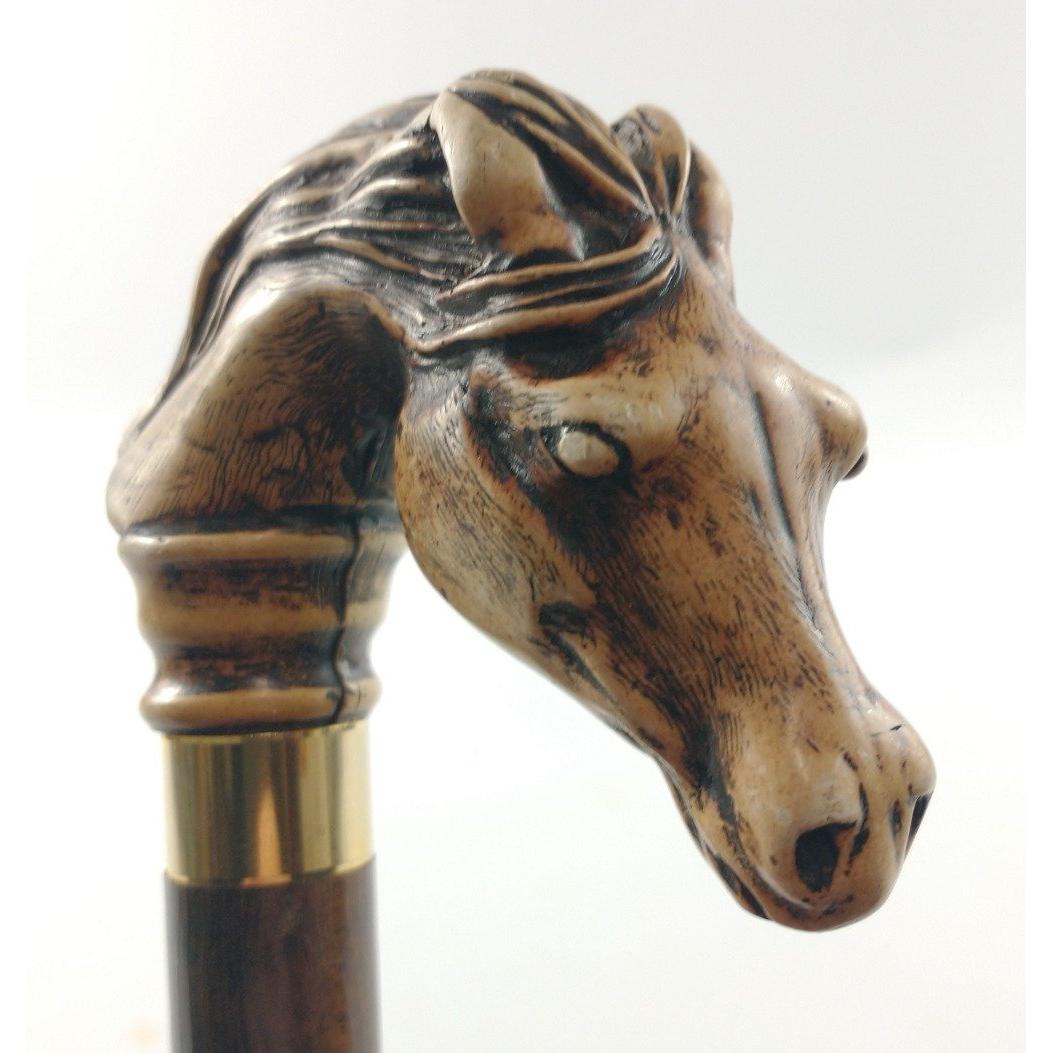 A 90cm walking stick with a carved horse's head top, needs a new ferruleApprox 1 pieces