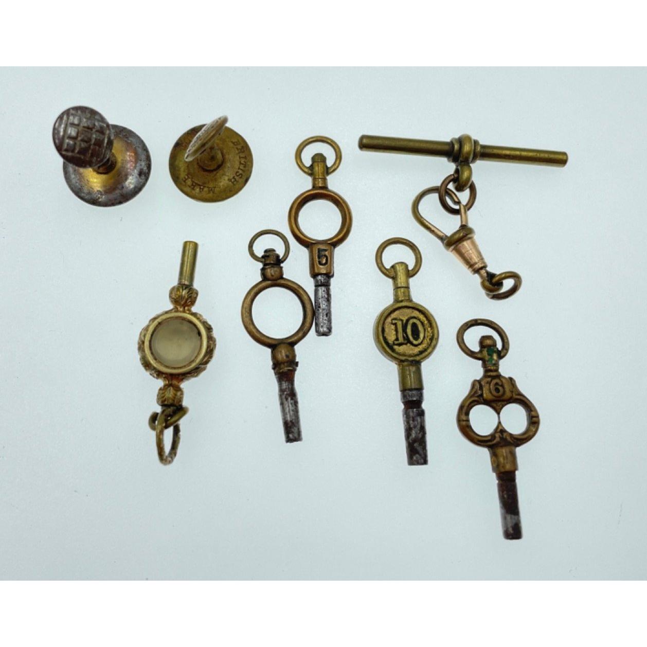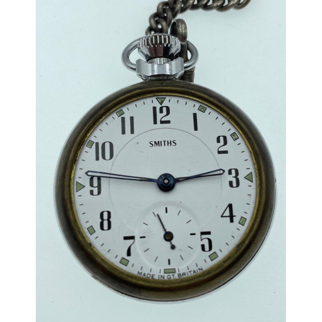 Two pocket watches, one by INGERSOLL (face 5cm), the other, minus the clock face, by SMITHS connected by a 375 watch chain approx 38cm gross weight 167g, plus a small box of 8 watch keysApprox 3 pieces