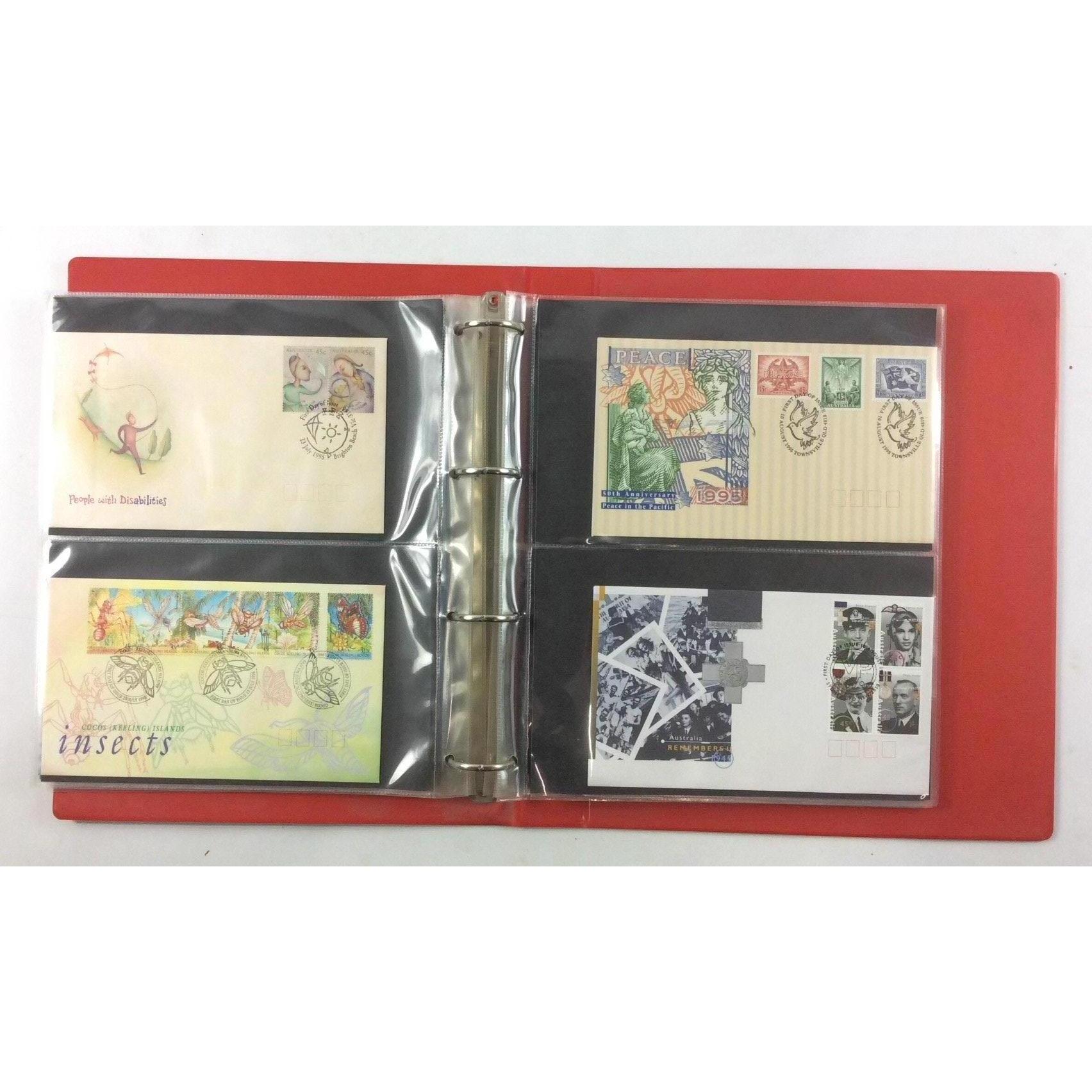 A wonderful opportunity to build a collection of Australian stamps with this box of three albums of 77 Australian first day unaddressed covers including a 1996 $5 and a 1997 $10 stamp, also CHRISTMAS ISLANDS (12 covers), COCOS (KEELING) ISLAND (9 covers), ANTARCTIC TERRITORY (6 covers), and 7 Australia sheetlets, total contents 104 covers and 7 sheetlets