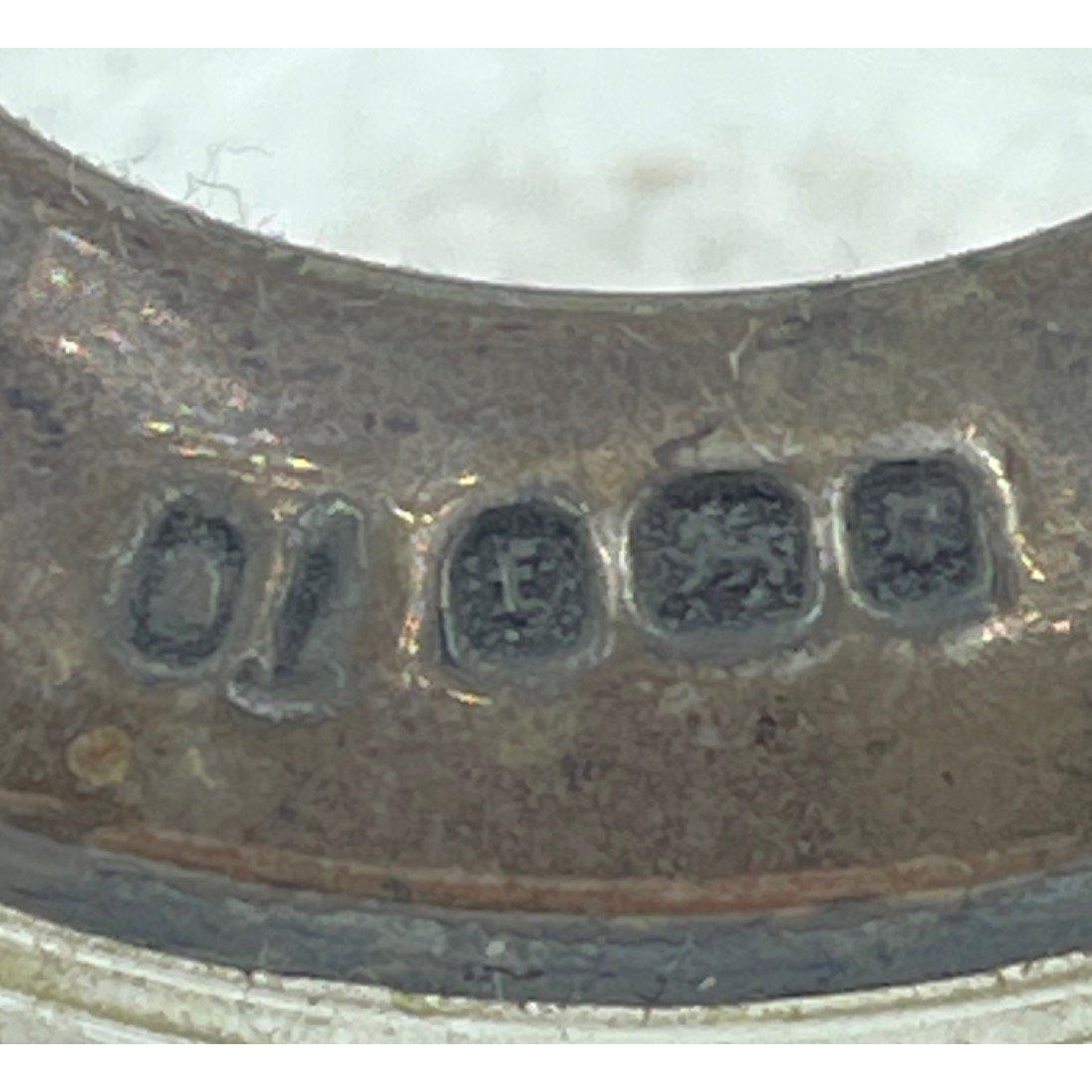 A lovely vintage wee glass inkwell with silver collar hallmarked Birmingham, date unclear, stands 5cm tallApprox 1 pieces