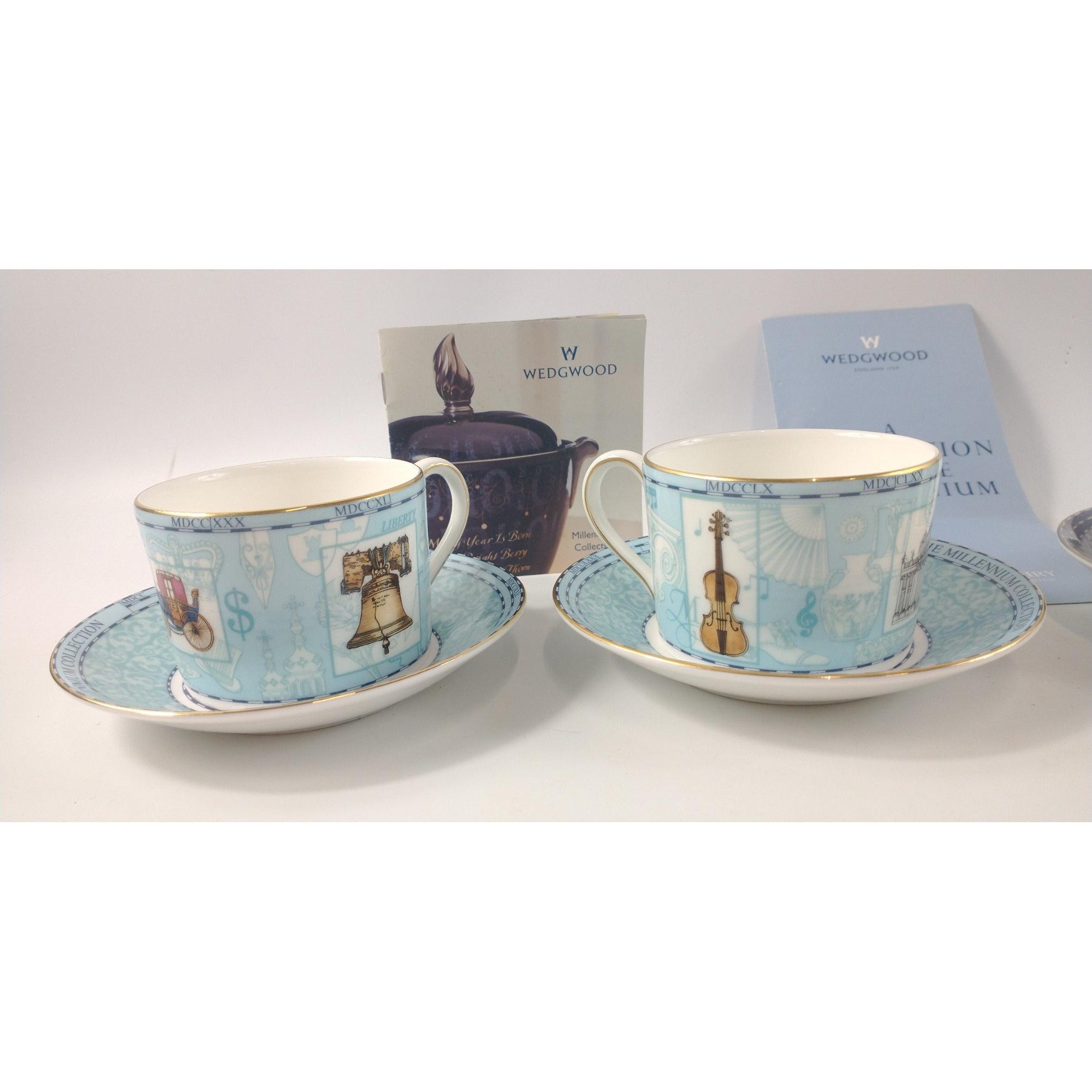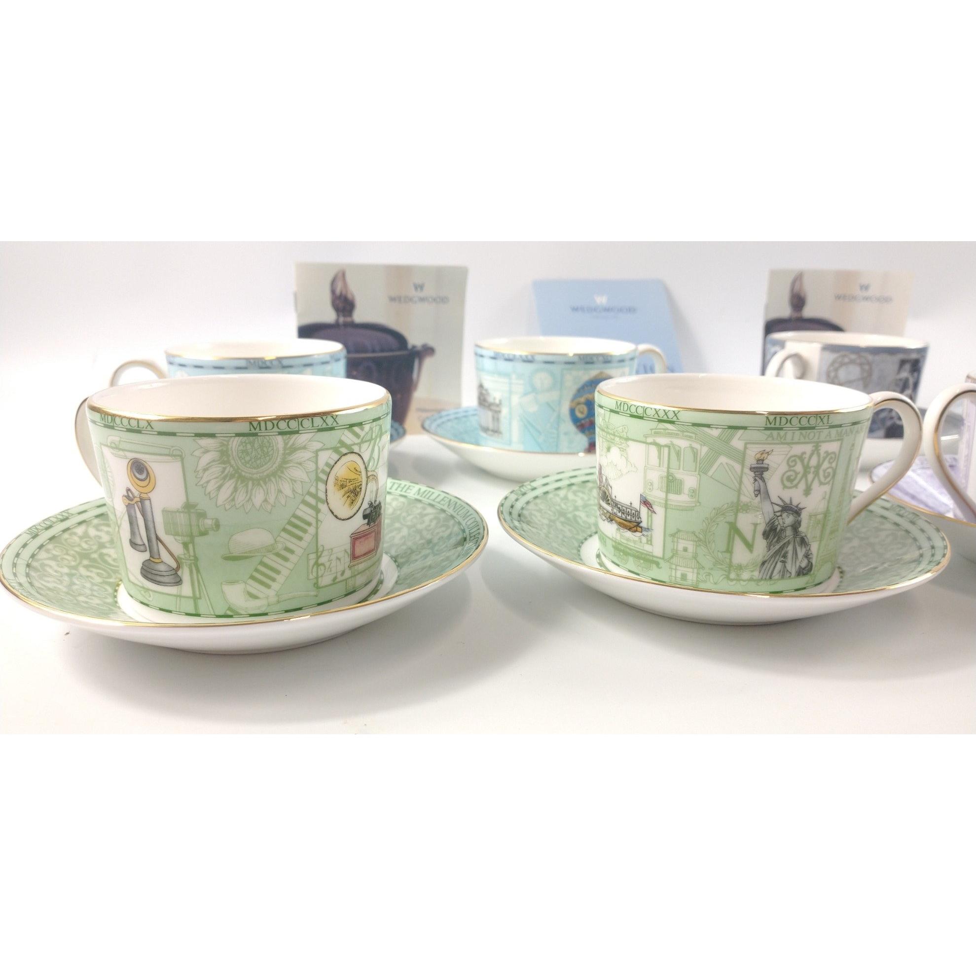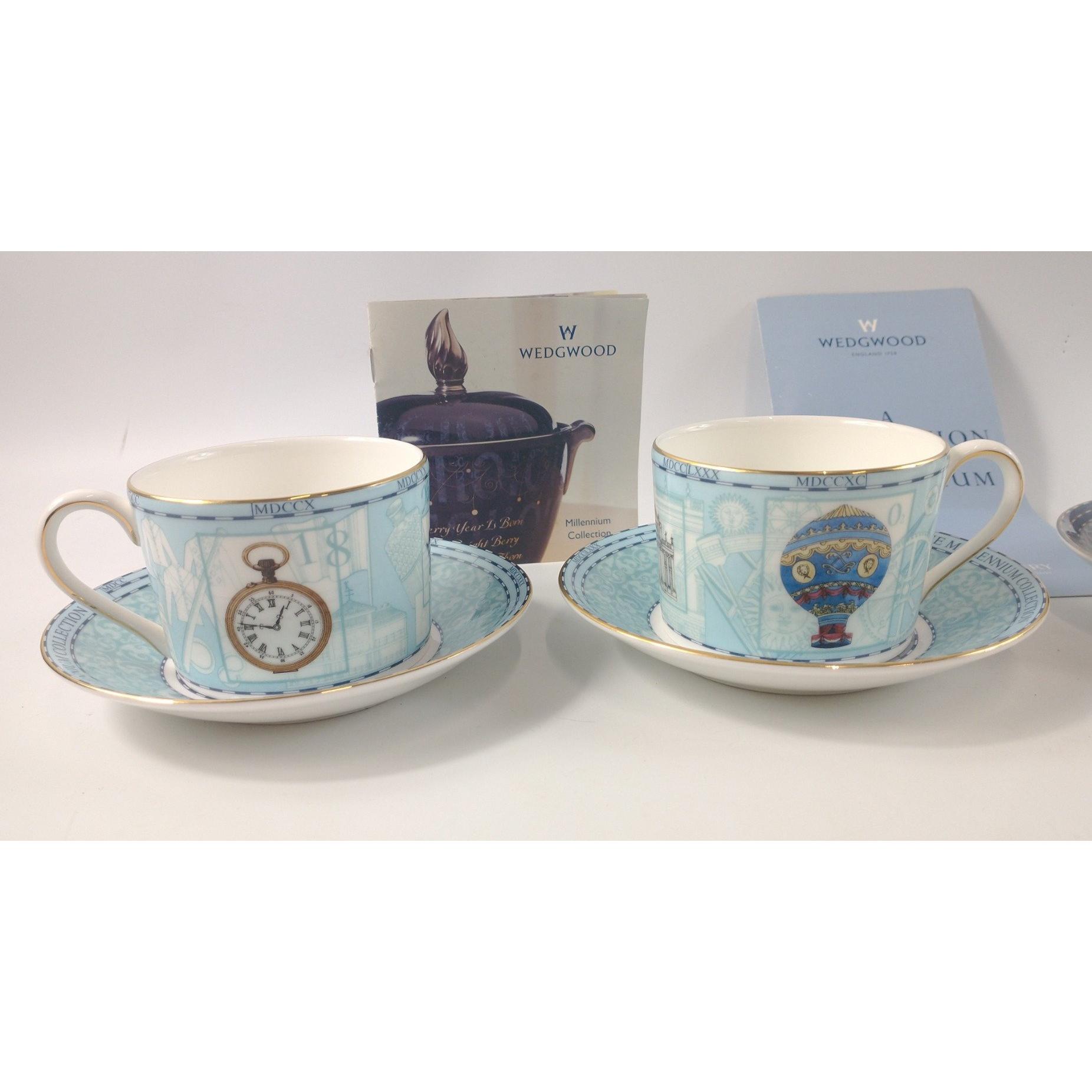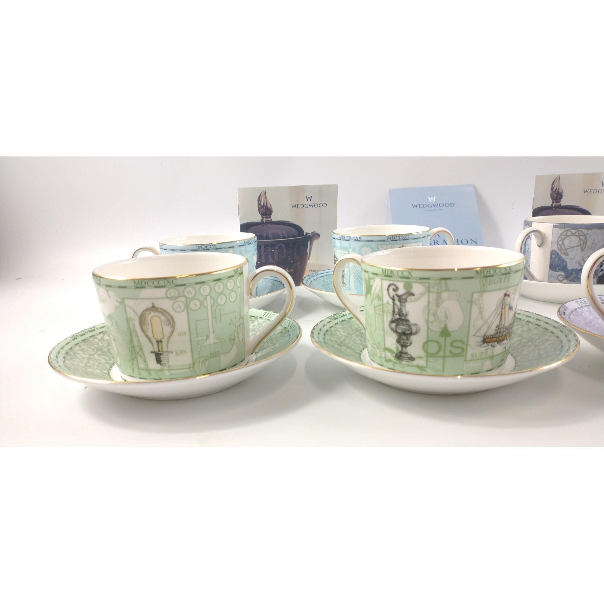Four pairs of WEDGWOOD MILLENNIUM teacups and saucers, no chips or cracksApprox 16 pieces