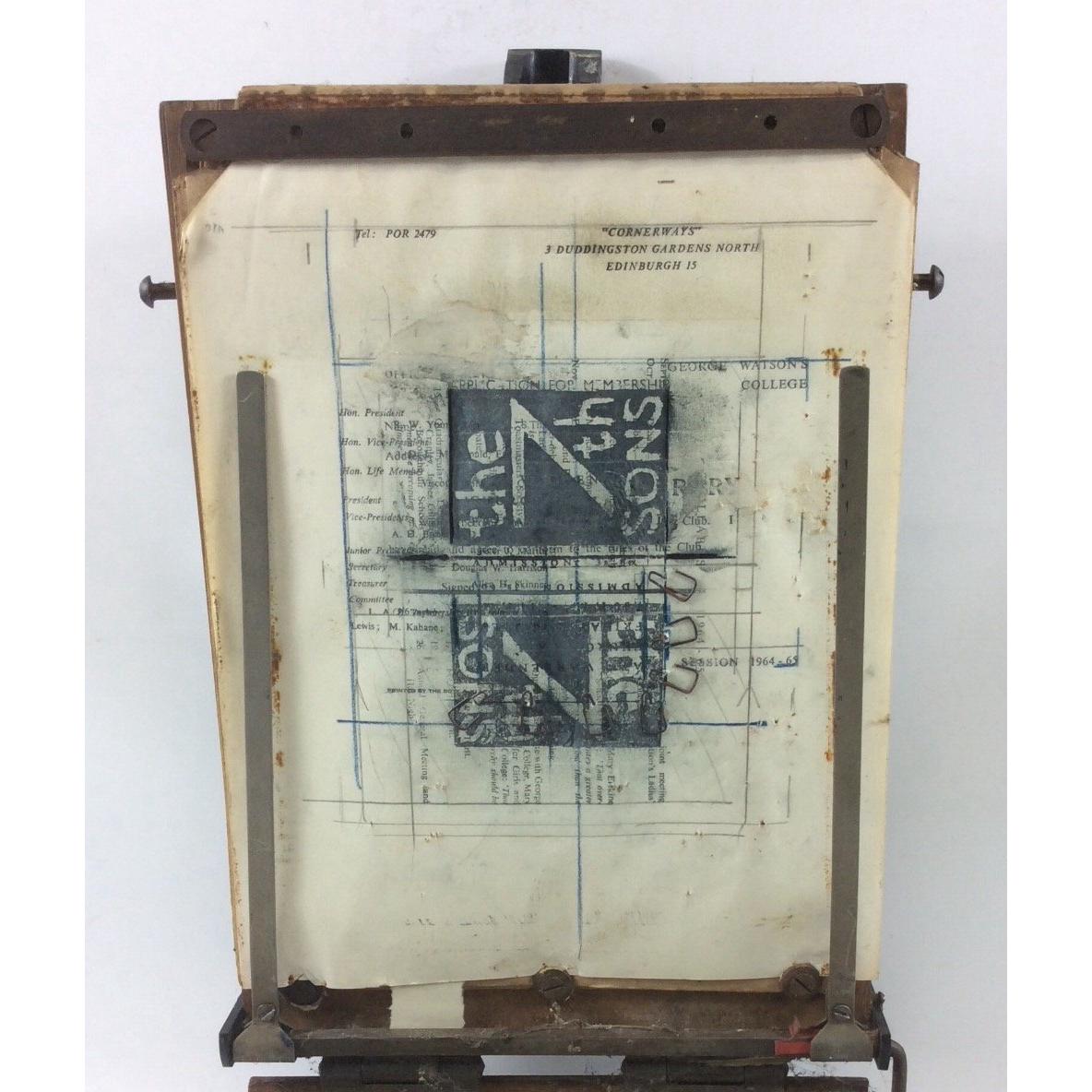 A small table-top ADANA 5x3 Five-Three letterpress machine complete with some type-set and wooden blocks within the press - 9" long x 6" wide x 9" tall approx and also an ADANA vintage table top press