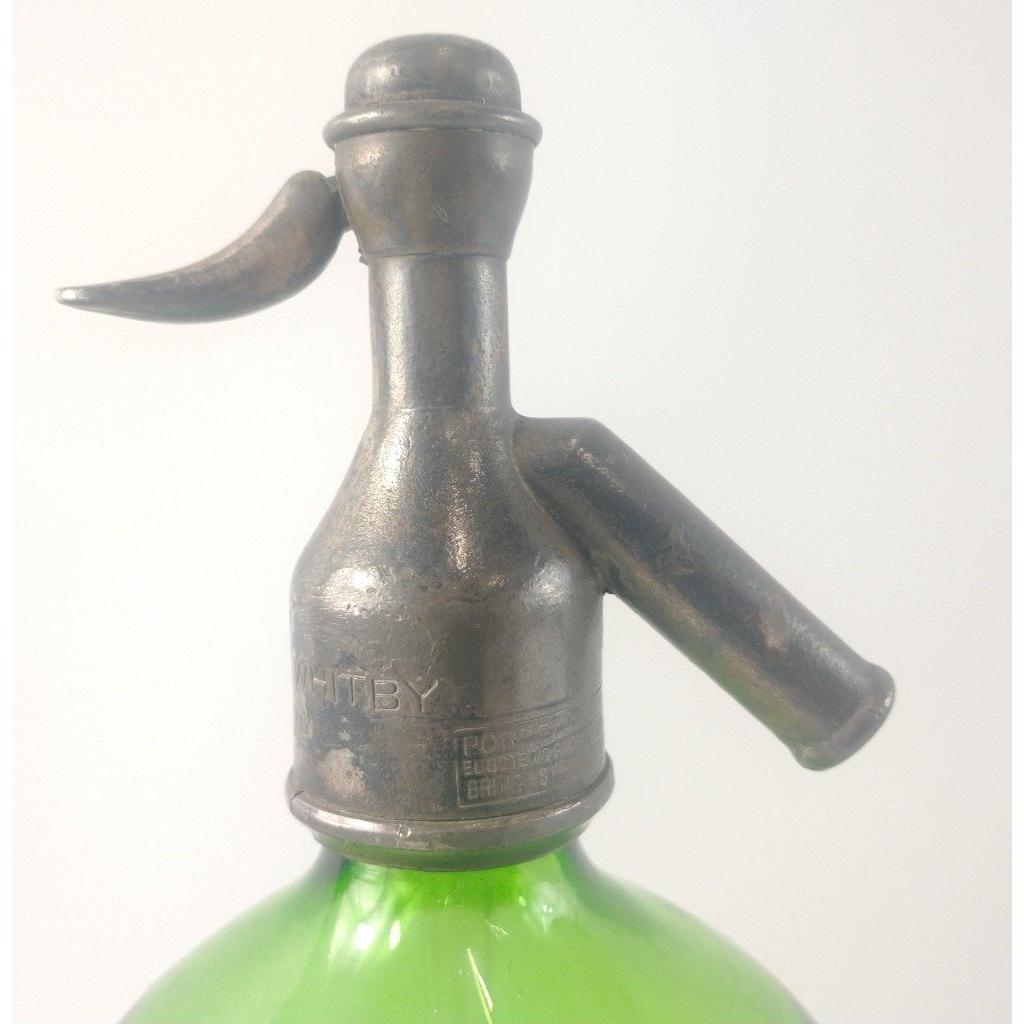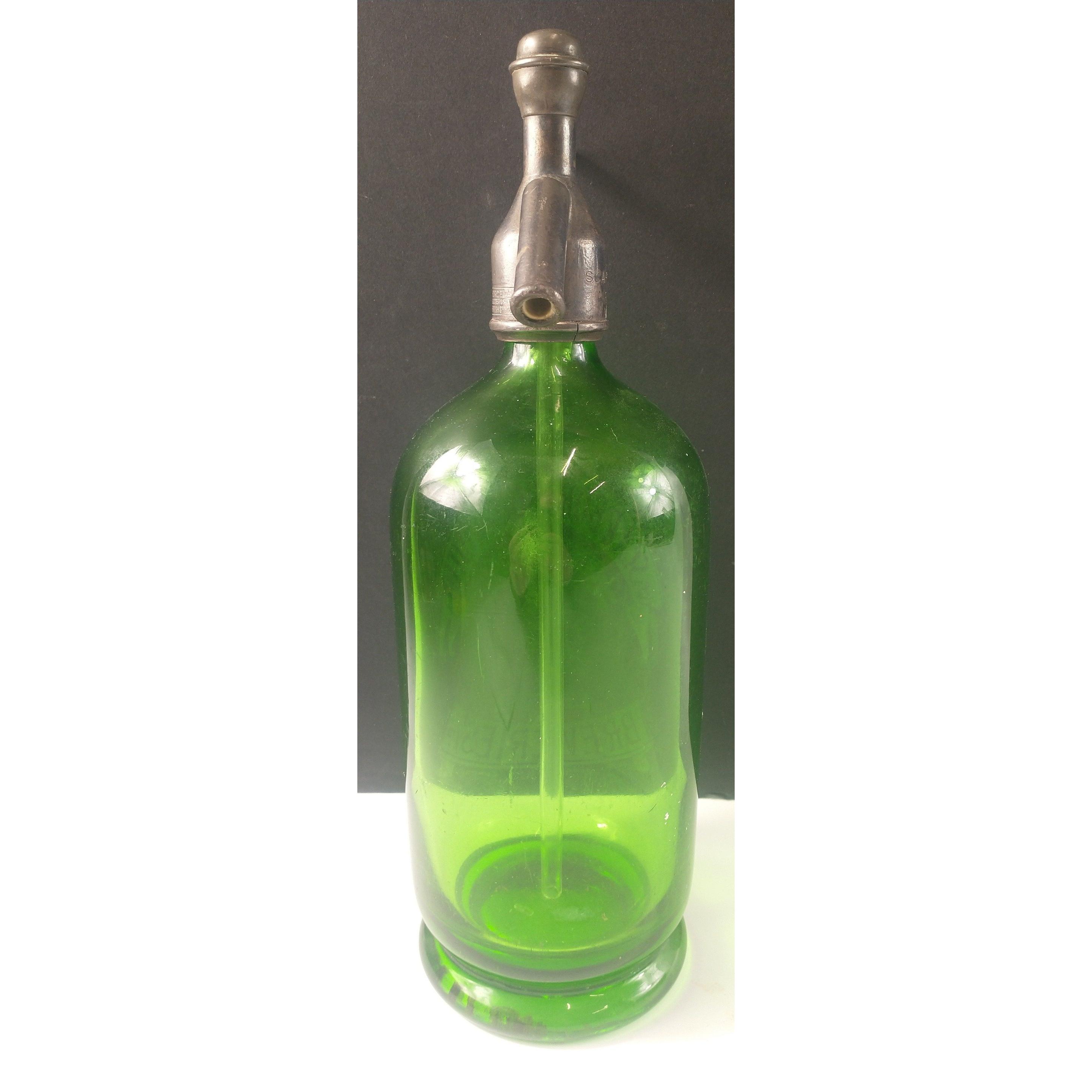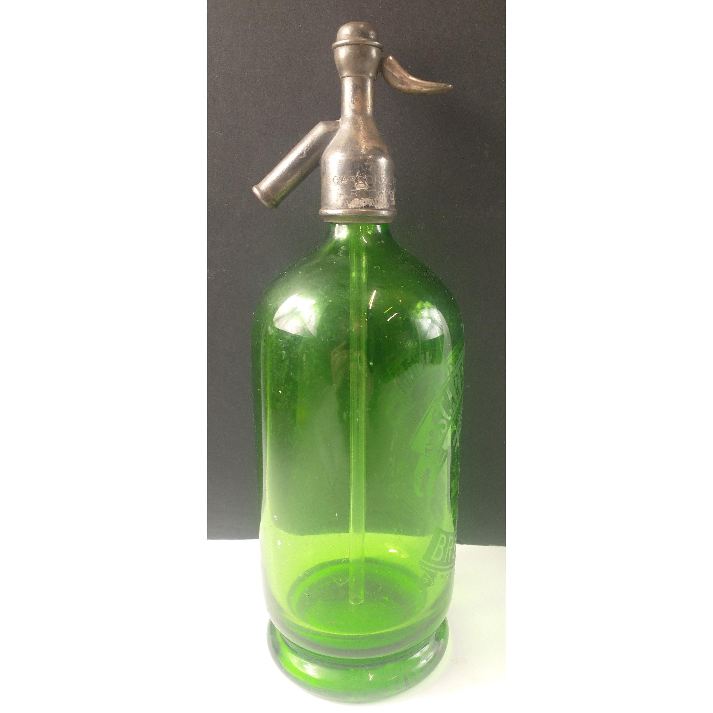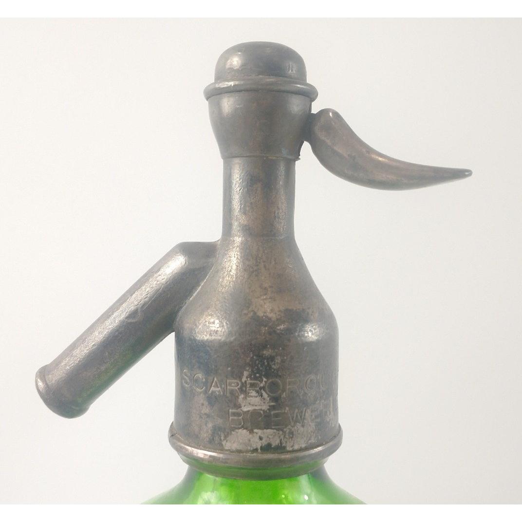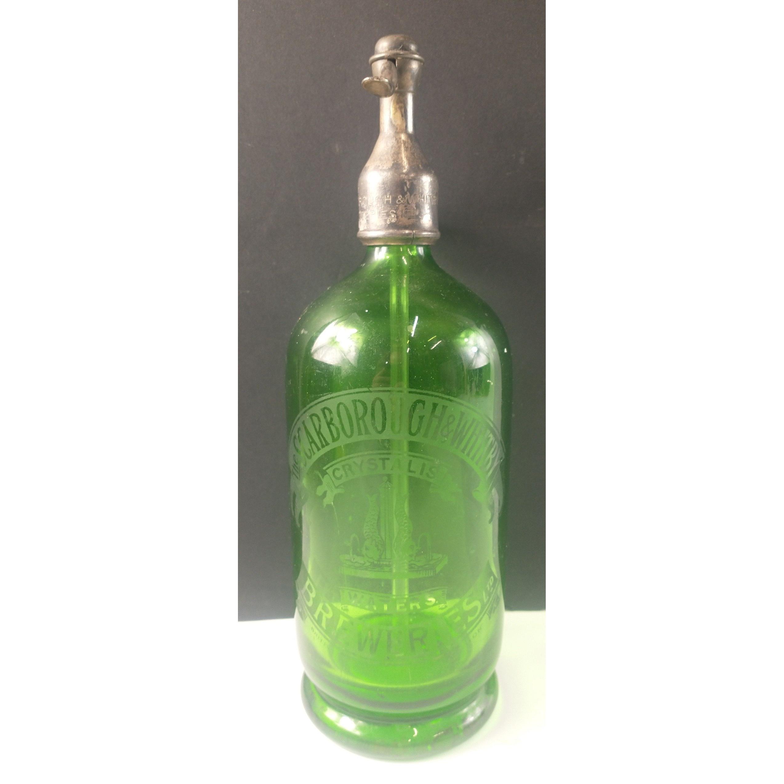 A vintage CRYSTALIS WATERS green glass soda syphon bottle from the Scarborough & Whitby Brewery standing 32cm high