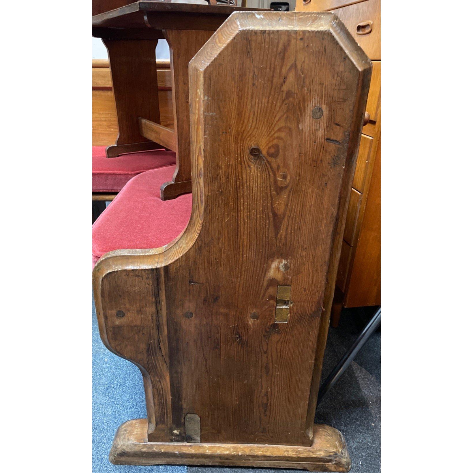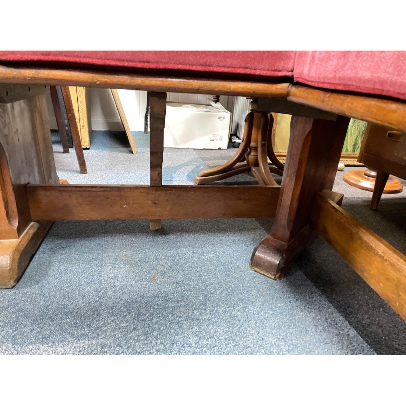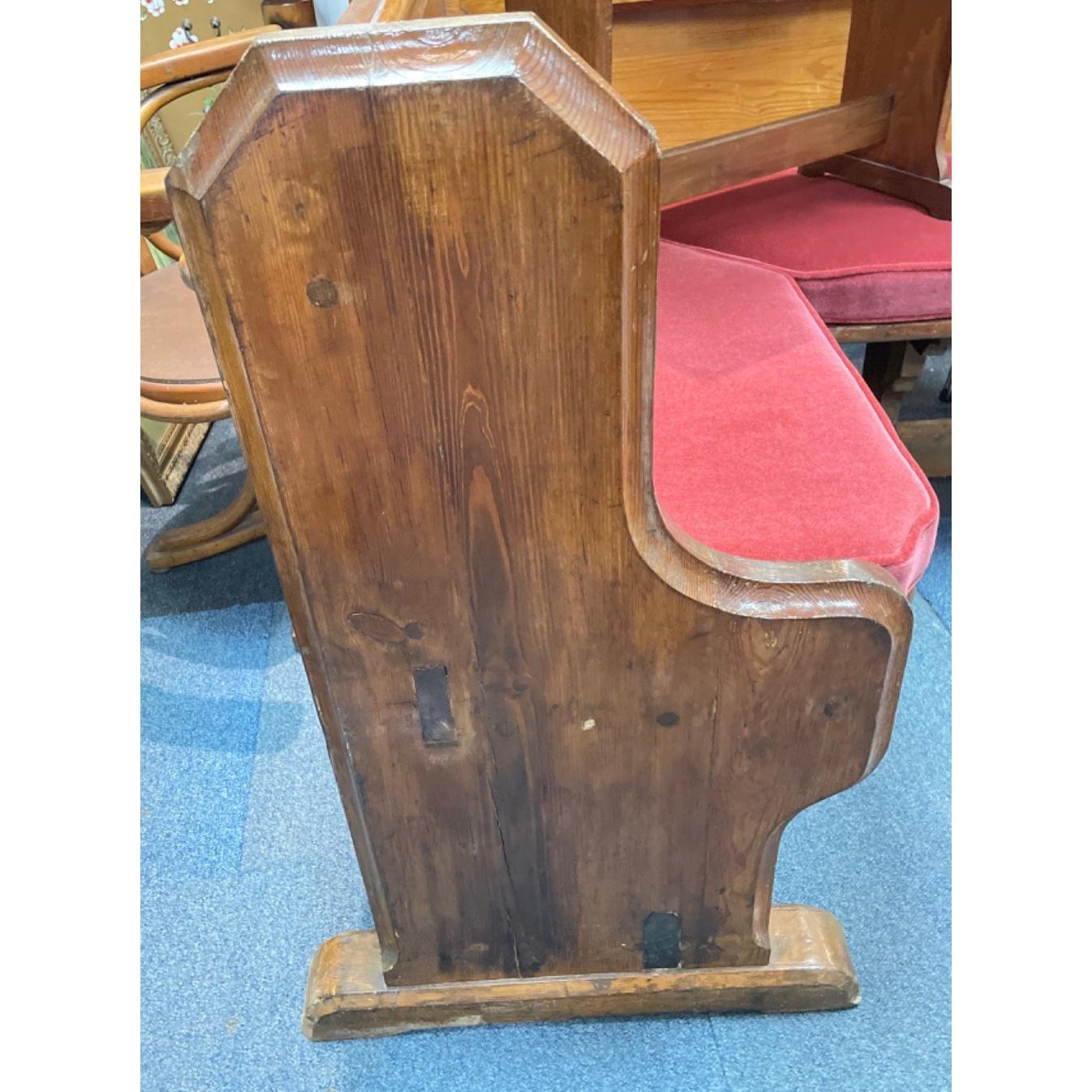 A beautiful VICTORIAN corner church pew with red velvet fitted cushions - EXCEPTIONAL QUALITY - dimensions height 95cm x Lshape 117cm each side x 58cm depth approx Approx 1 pieces