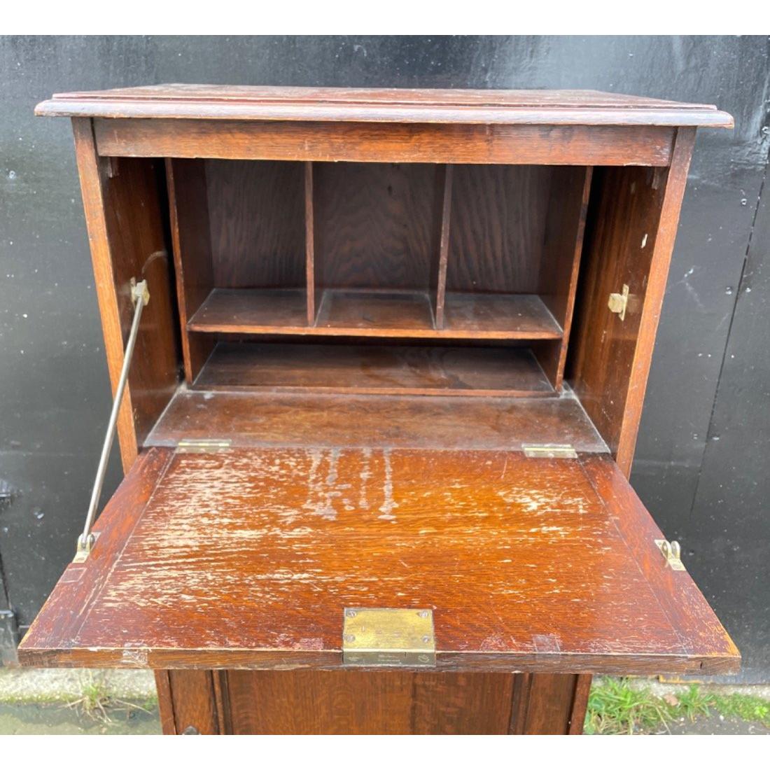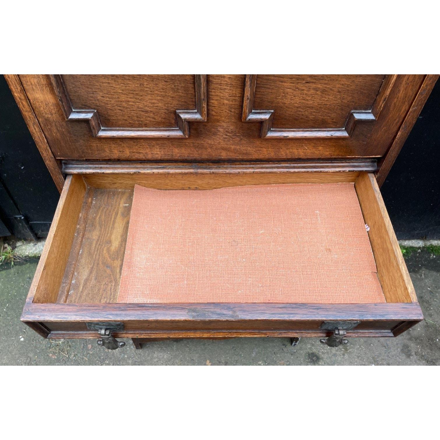 LOVELY QUALITY! An antique oak cabinet with pull- down front, a drawer and cupboard space below - height 108cm x width 55cm x depth 36cm approx
