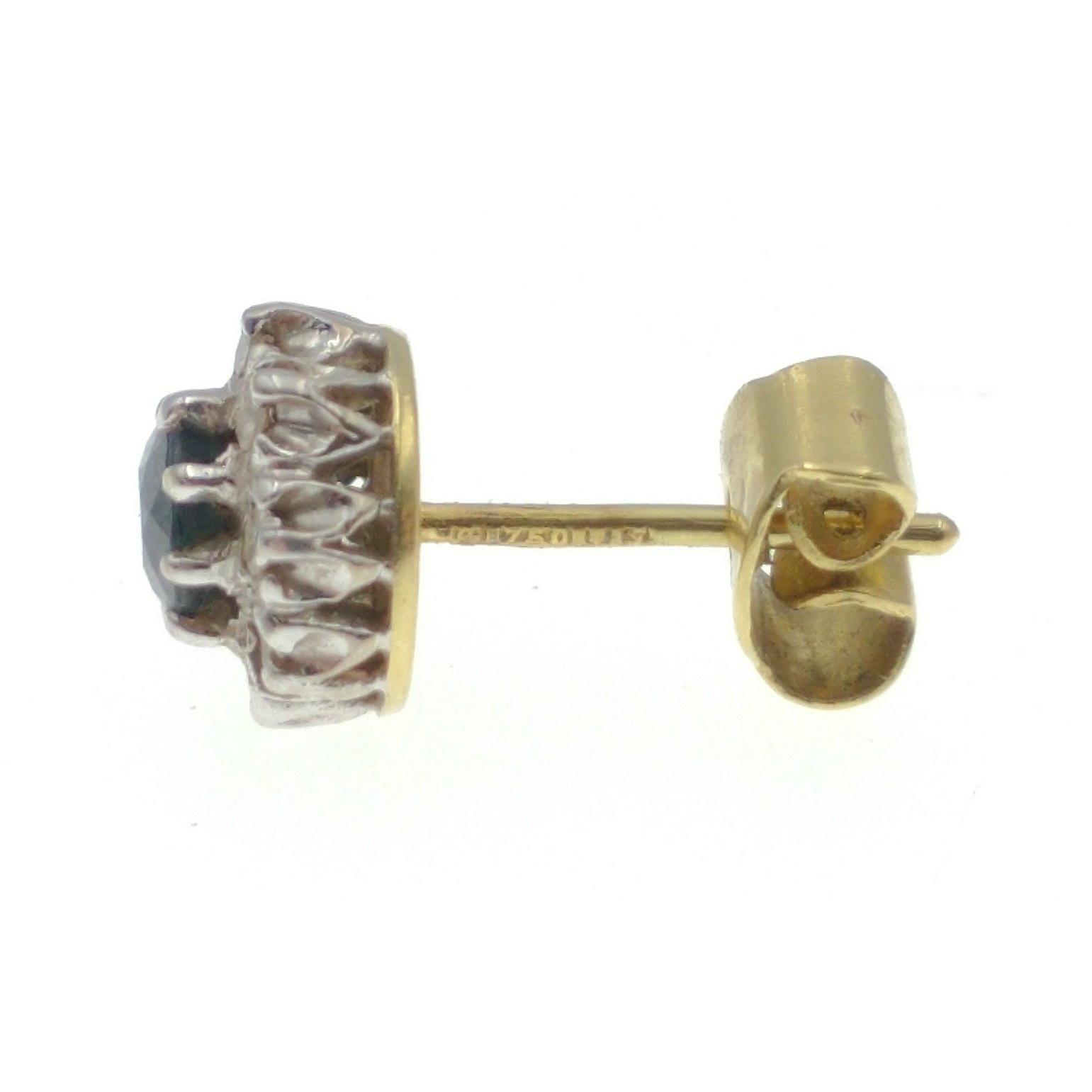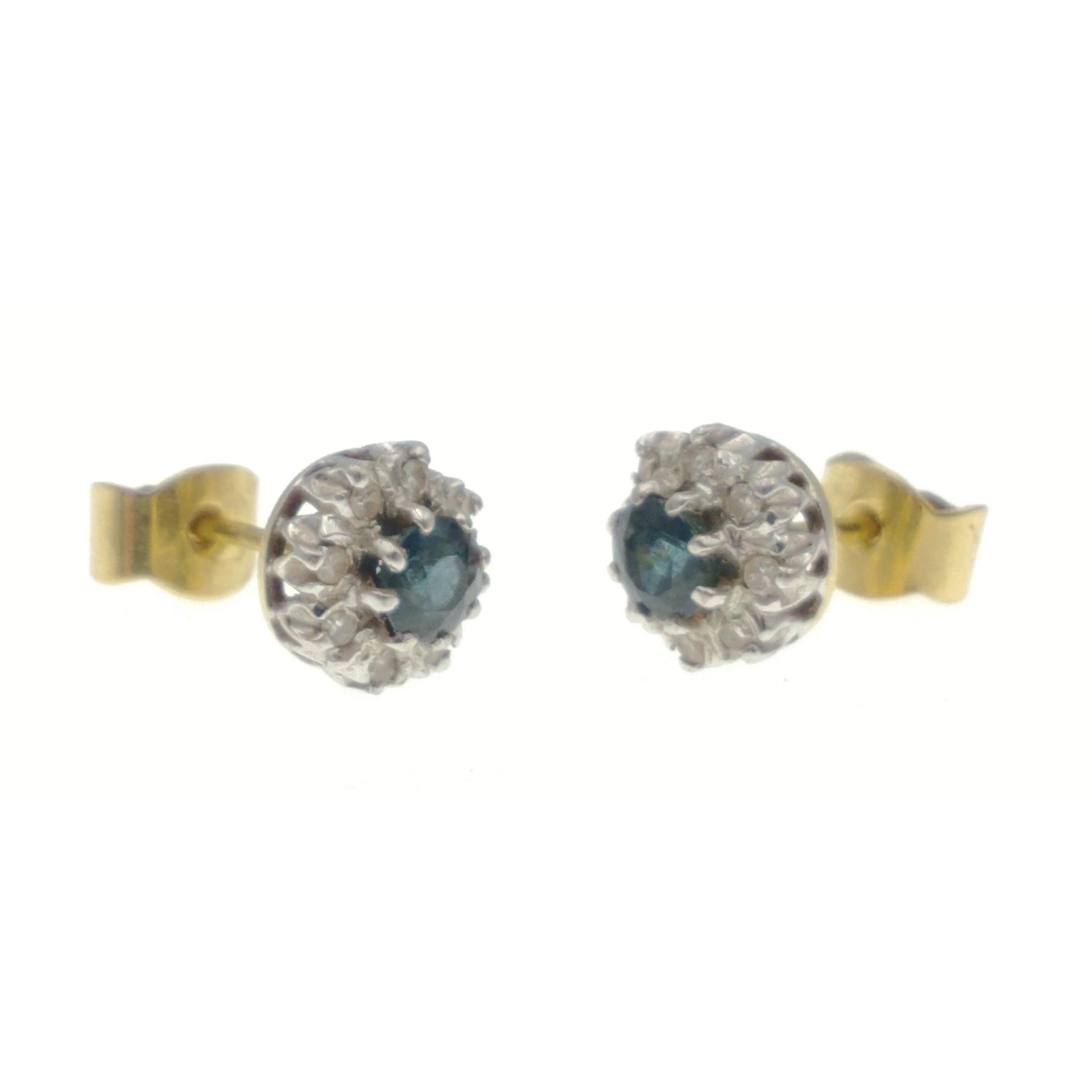 DIAMONDS ARE FOREVER! A STUNNING pair of unmarked 'yellow metal' diamond(tested) and sapphire earrings, eight diamonds surrounding a beautiful blue SAPPHIRE - gross weight 2.72g approxApprox 2 pieces