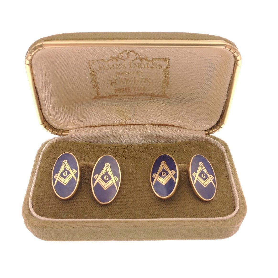Gold 9ct Masonic Cufflink Set in James Inglis of Hawick original Box. Weight 8.8g in excellent condition