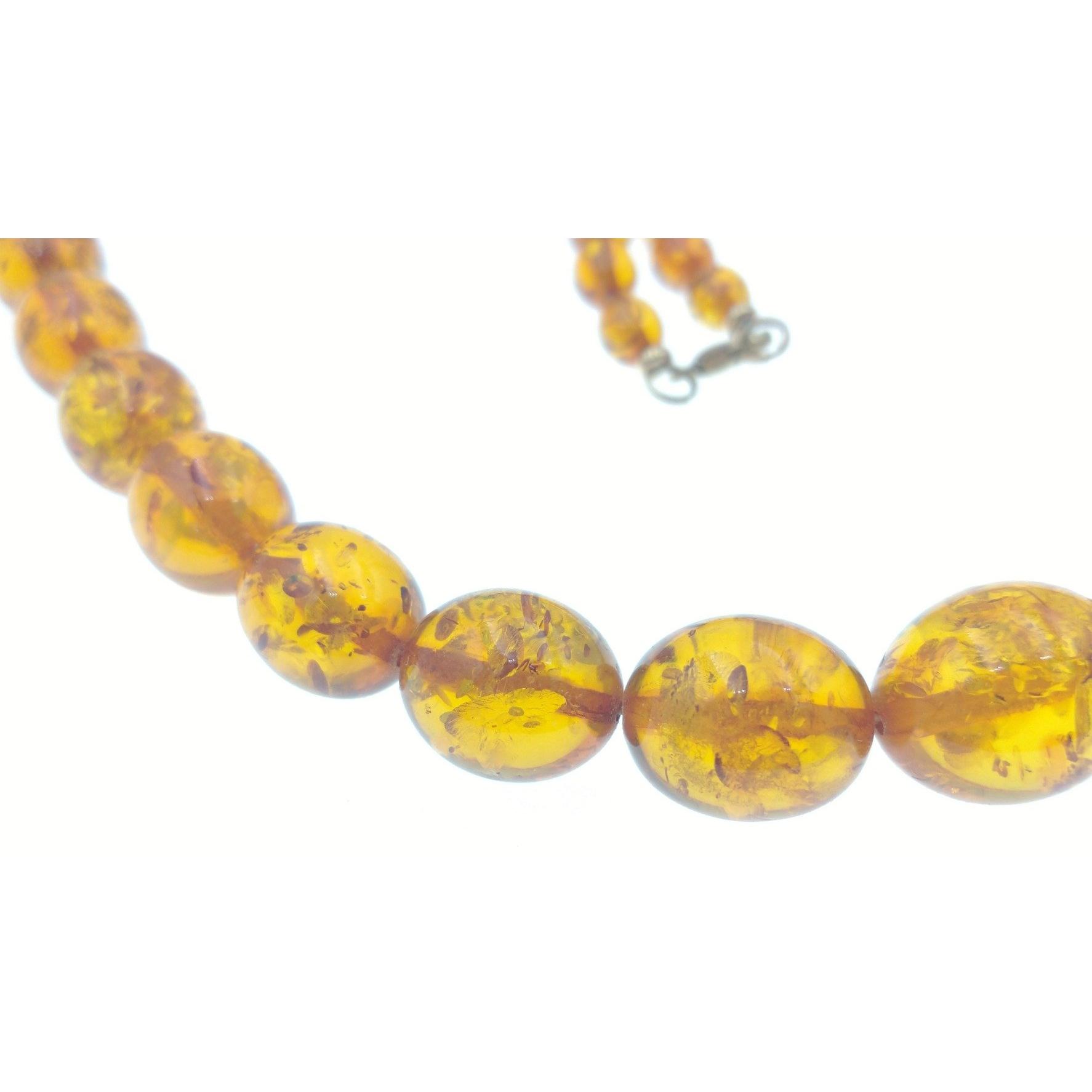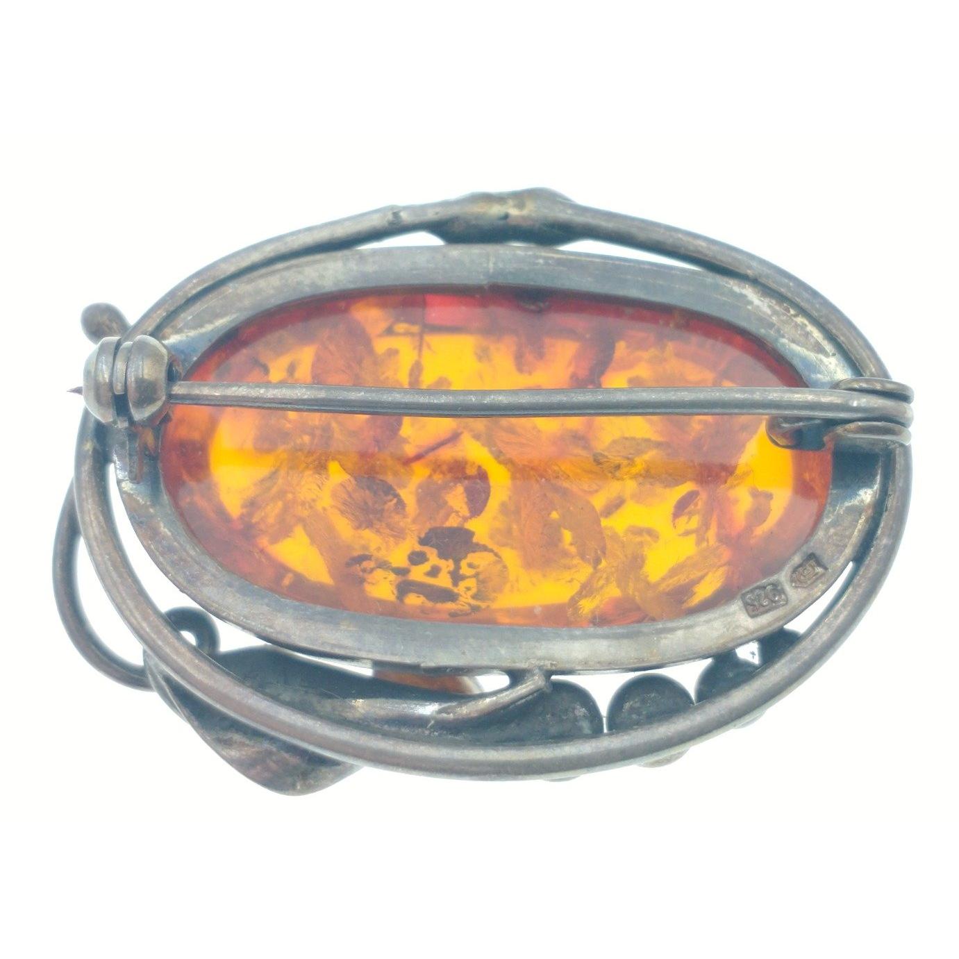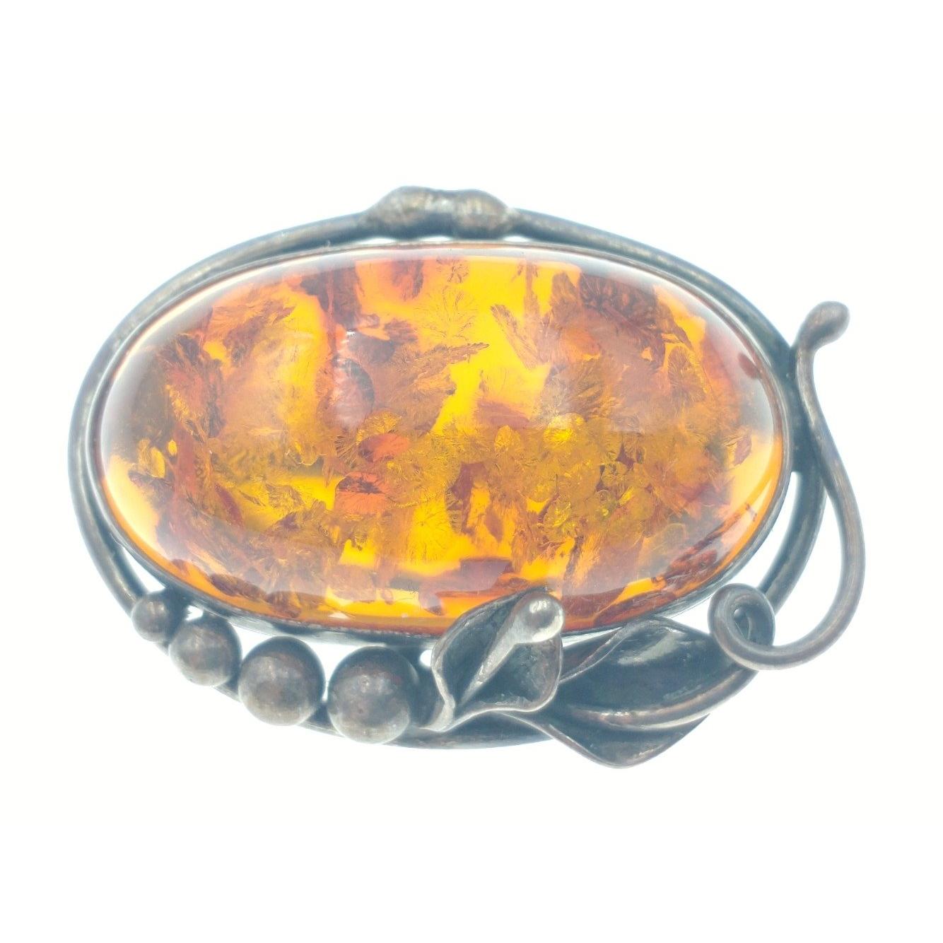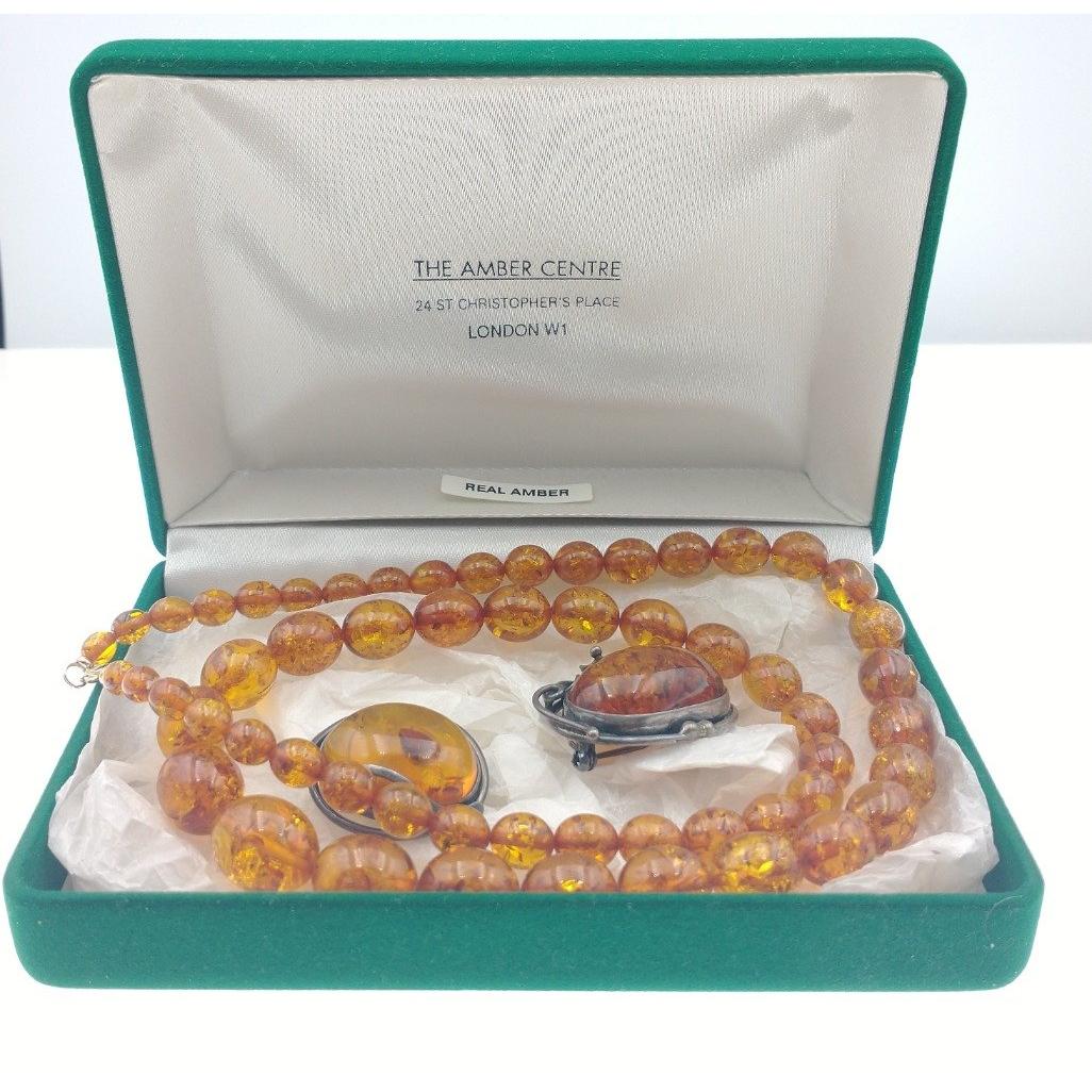A nice AMBER graduated bead necklace with two charming SUPER QUALITY amber brooches, one of which is silver 925 stamped 4cm length approx each Approx 3 pieces