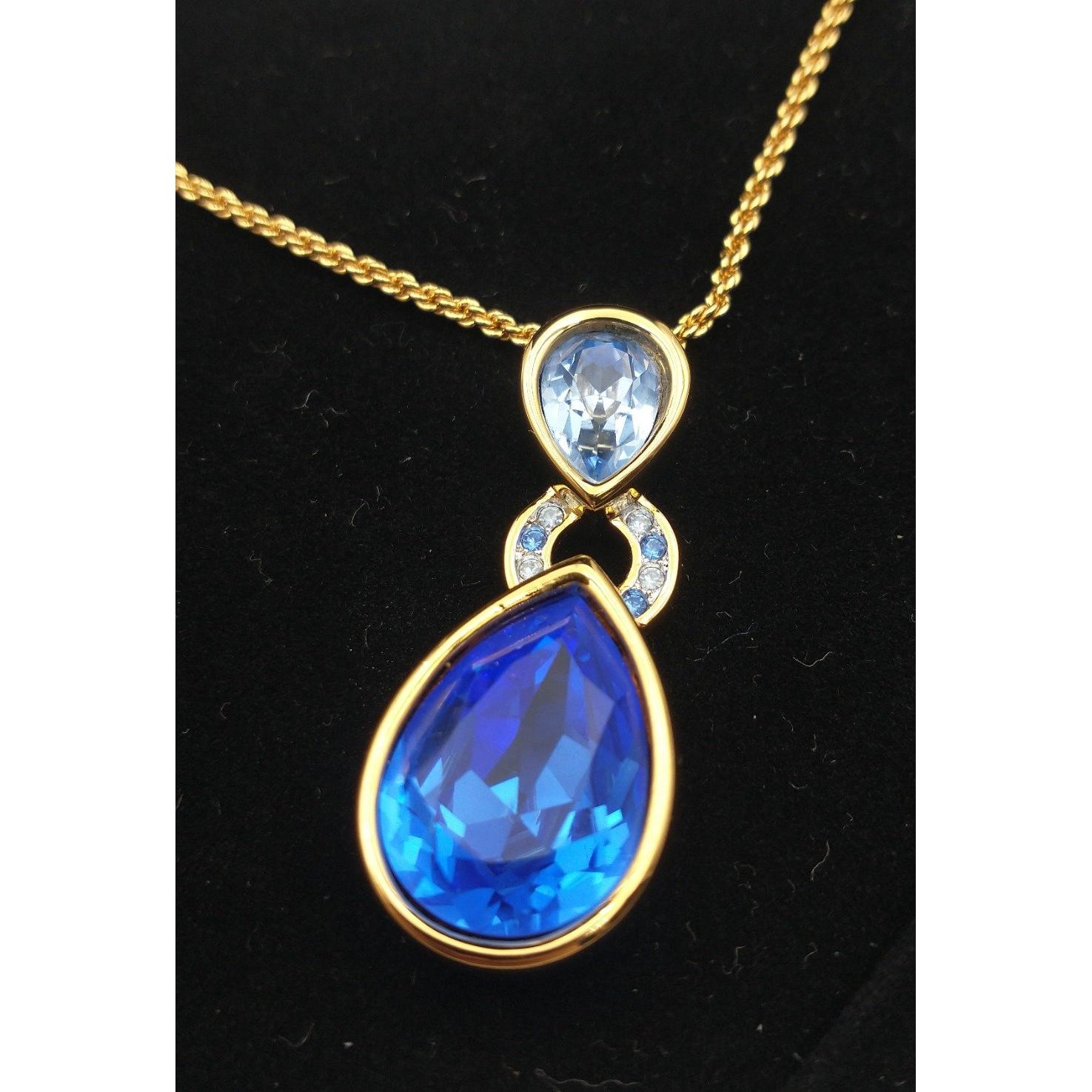 A rather fine boxed SWAROVSKI pendant necklace, chain 46cm long, with 2 clear blue tear drop crystals (4cm long), both pendant and chain have been stamped with the Swarovski swan Approx 1 pieces