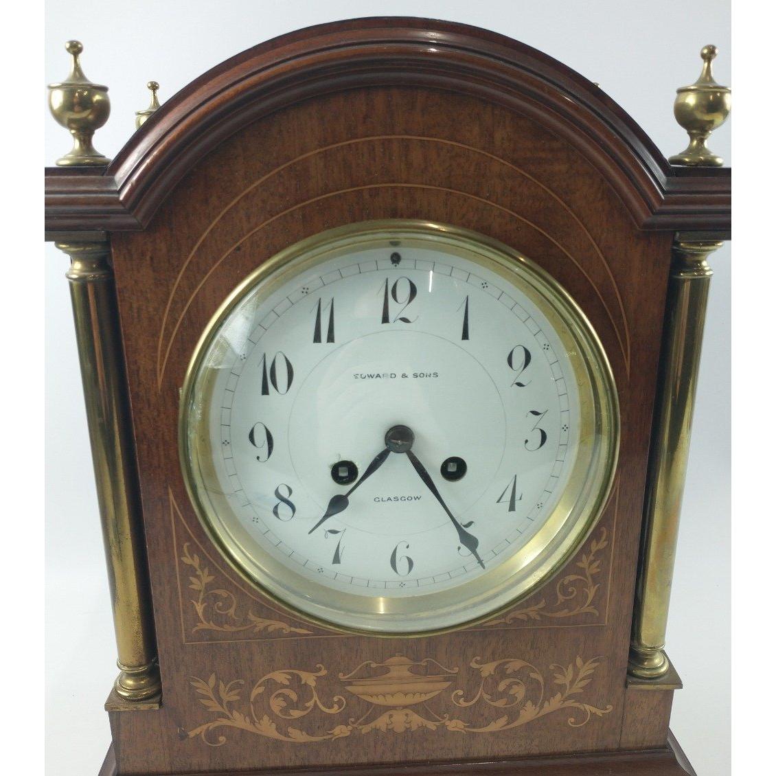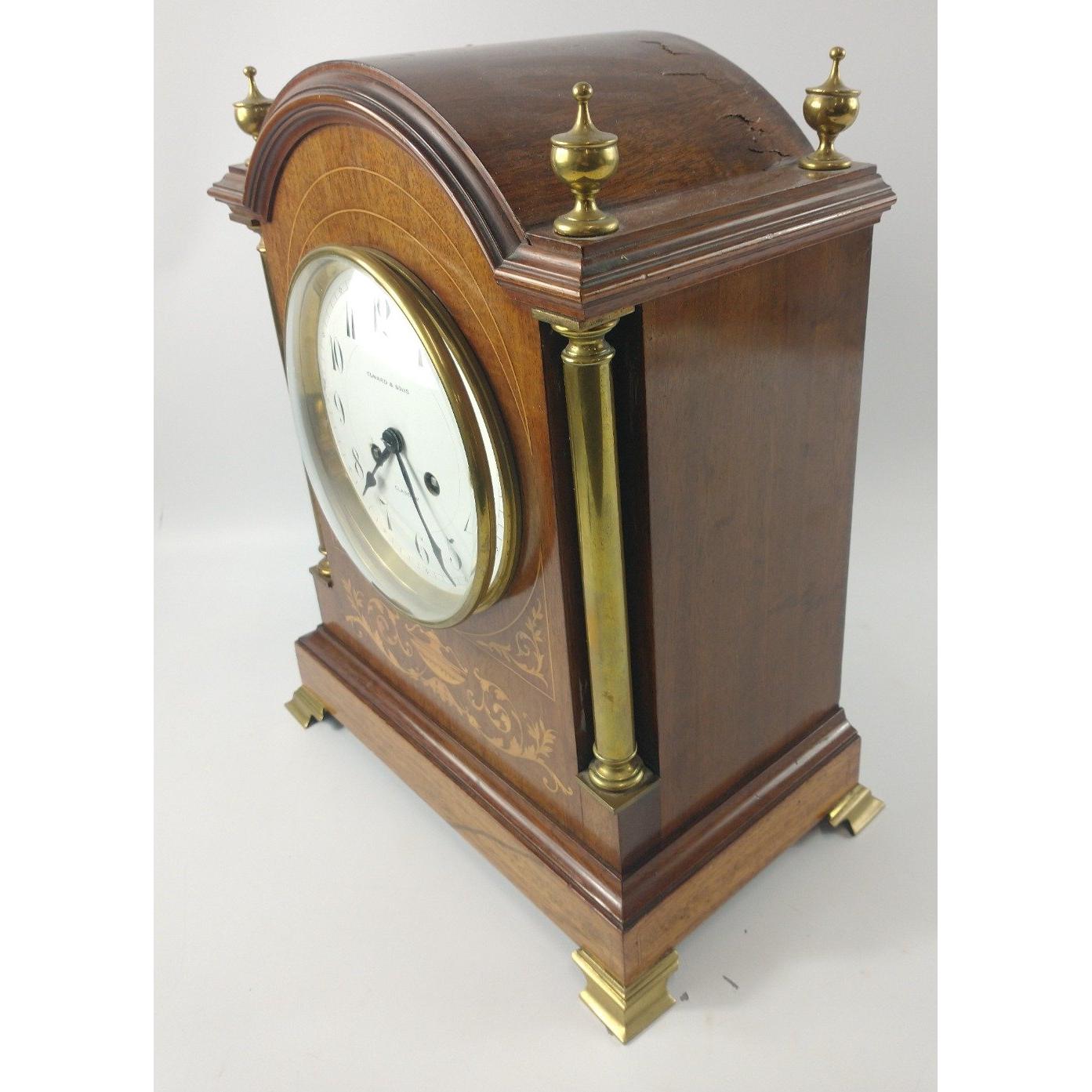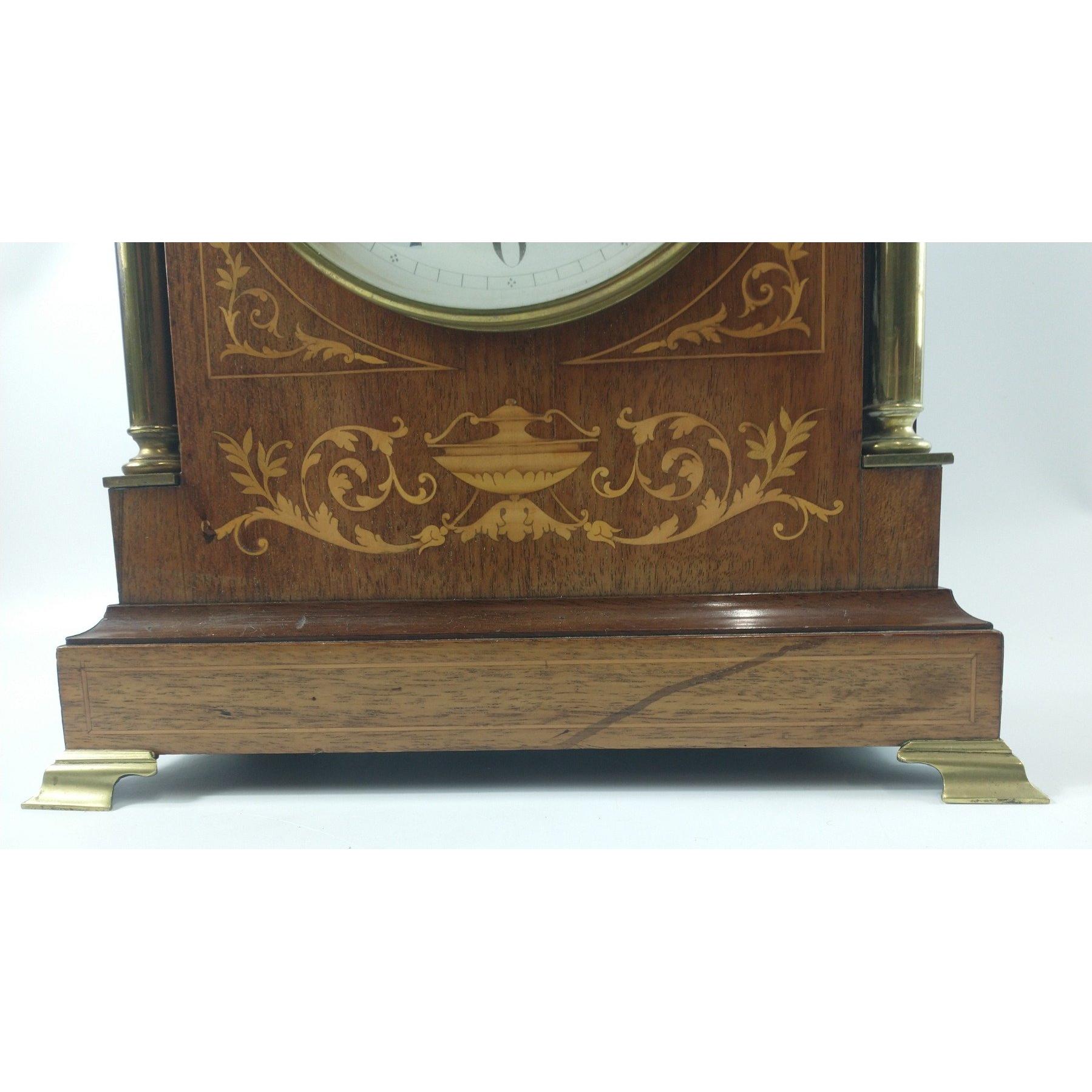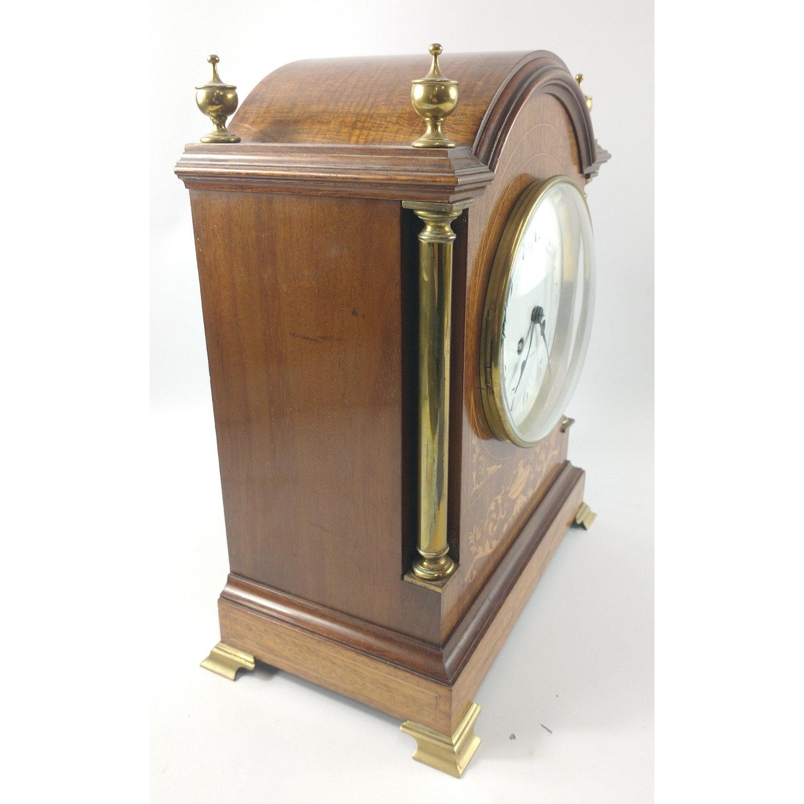 A Sheraton-style bracket clock with marquetry inlay with bracket ogee feet by Edward & Sons, Glasgow, stands approx 36cm highApprox 1 pieces