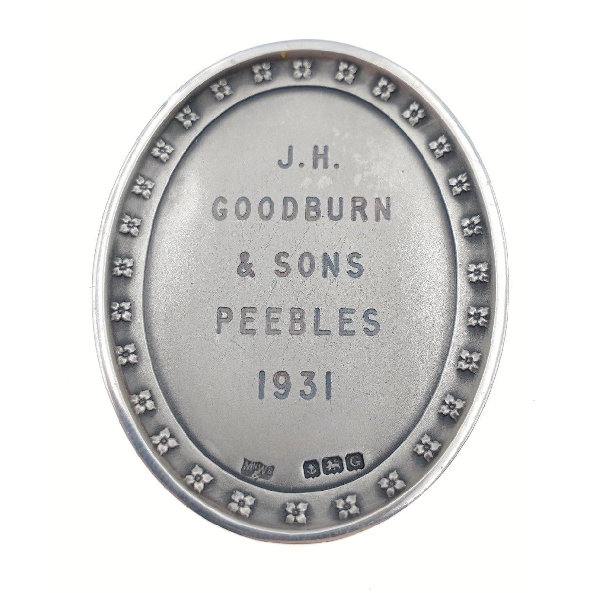 PEEBLES LOCAL INTEREST! Large Silver Medal THE CONFECTIONERS, BAKERS AND ALLIED TRADES EXHIBITION LONDON 1931. Cased Mappin and Webb fully hall marked medal won by J.H. Goodburn & Sons Peebles weight 43.70g approx dimenssions 5cm height x 4cm width approx