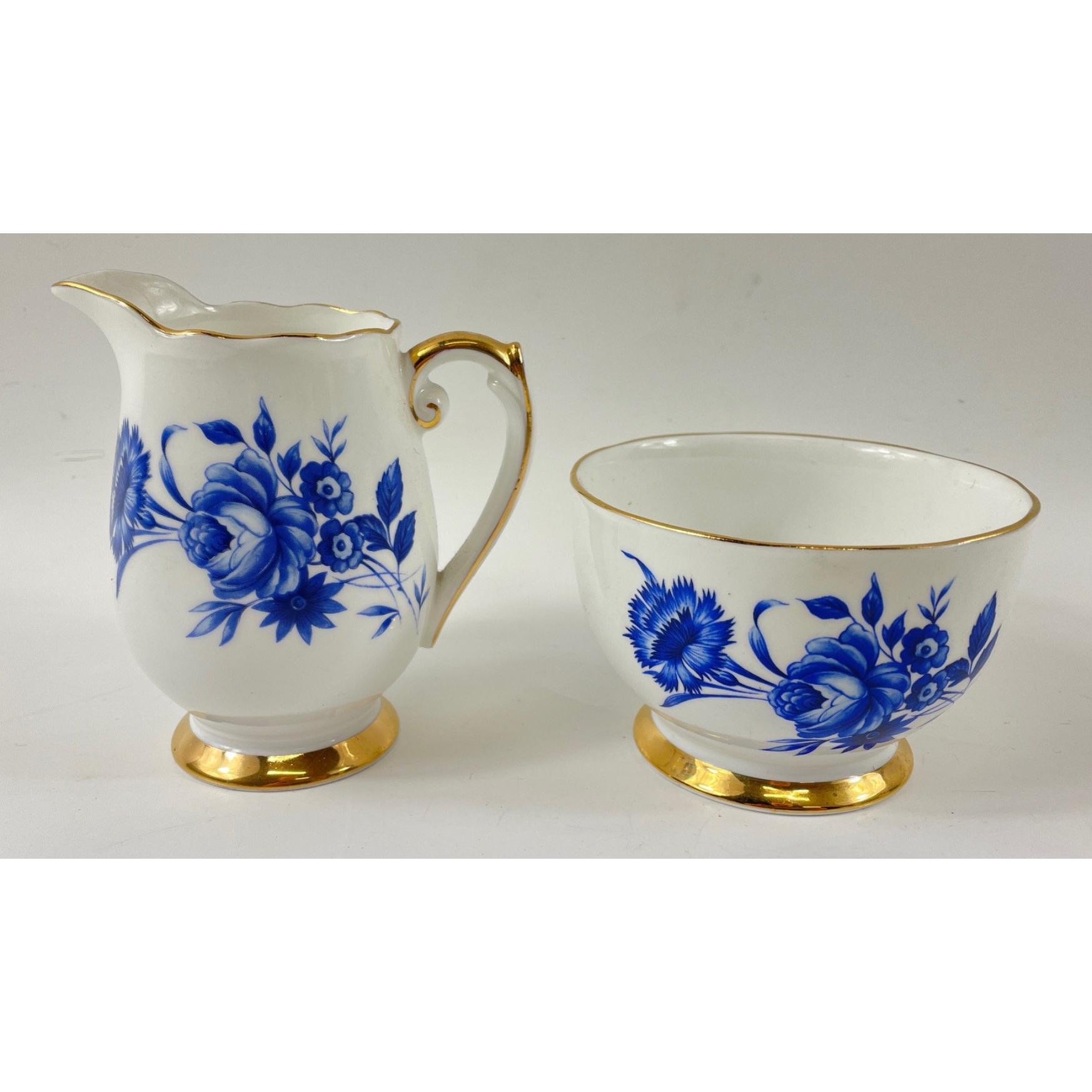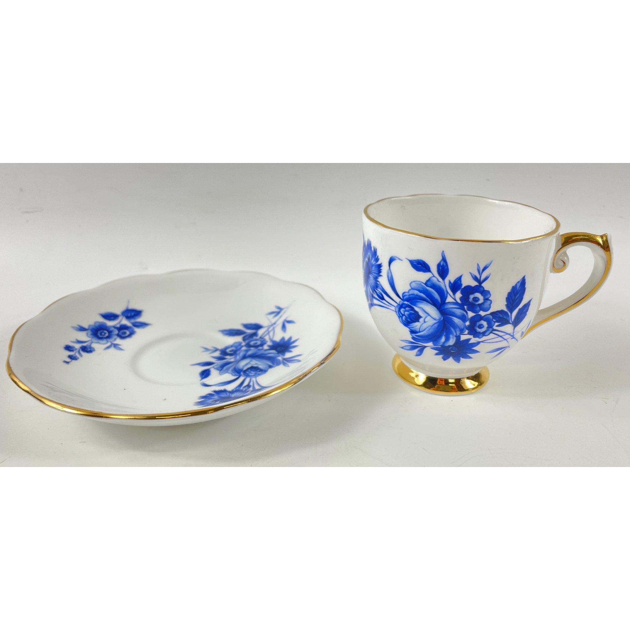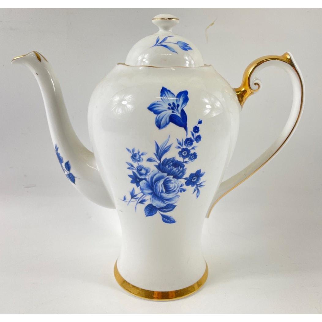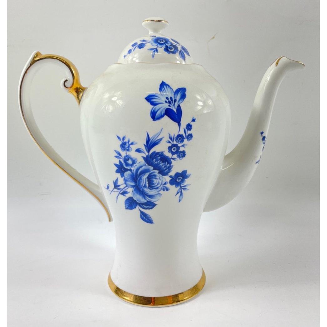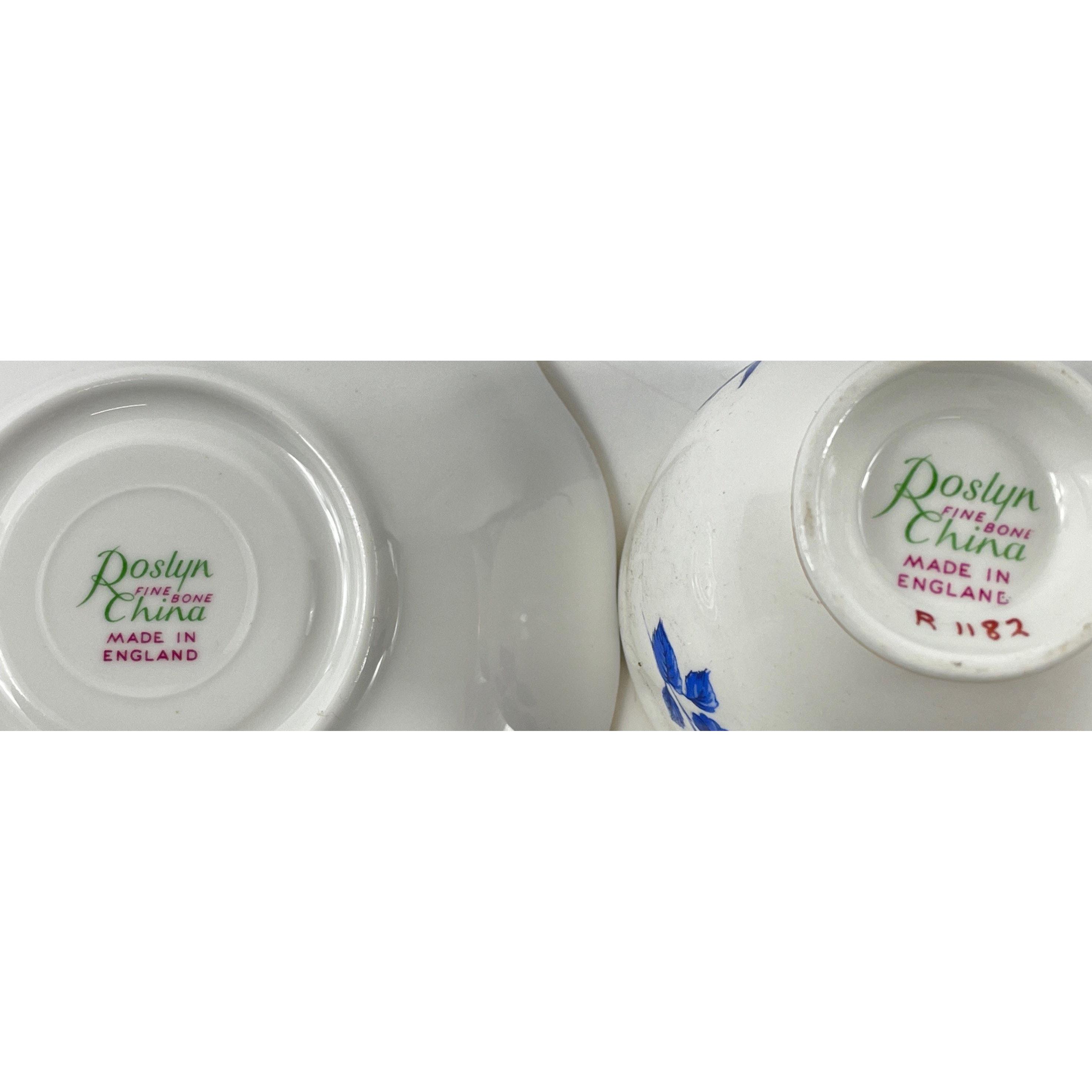 A vintage ROSLYN CHINA fine bone china coffee service for 6 comprising 6 demi-tasse cups, 6 saucers, 1 coffee pot (22cm tall), 1 creamer and 1 sugar bowl, all in excellent conditionApprox 15 pieces