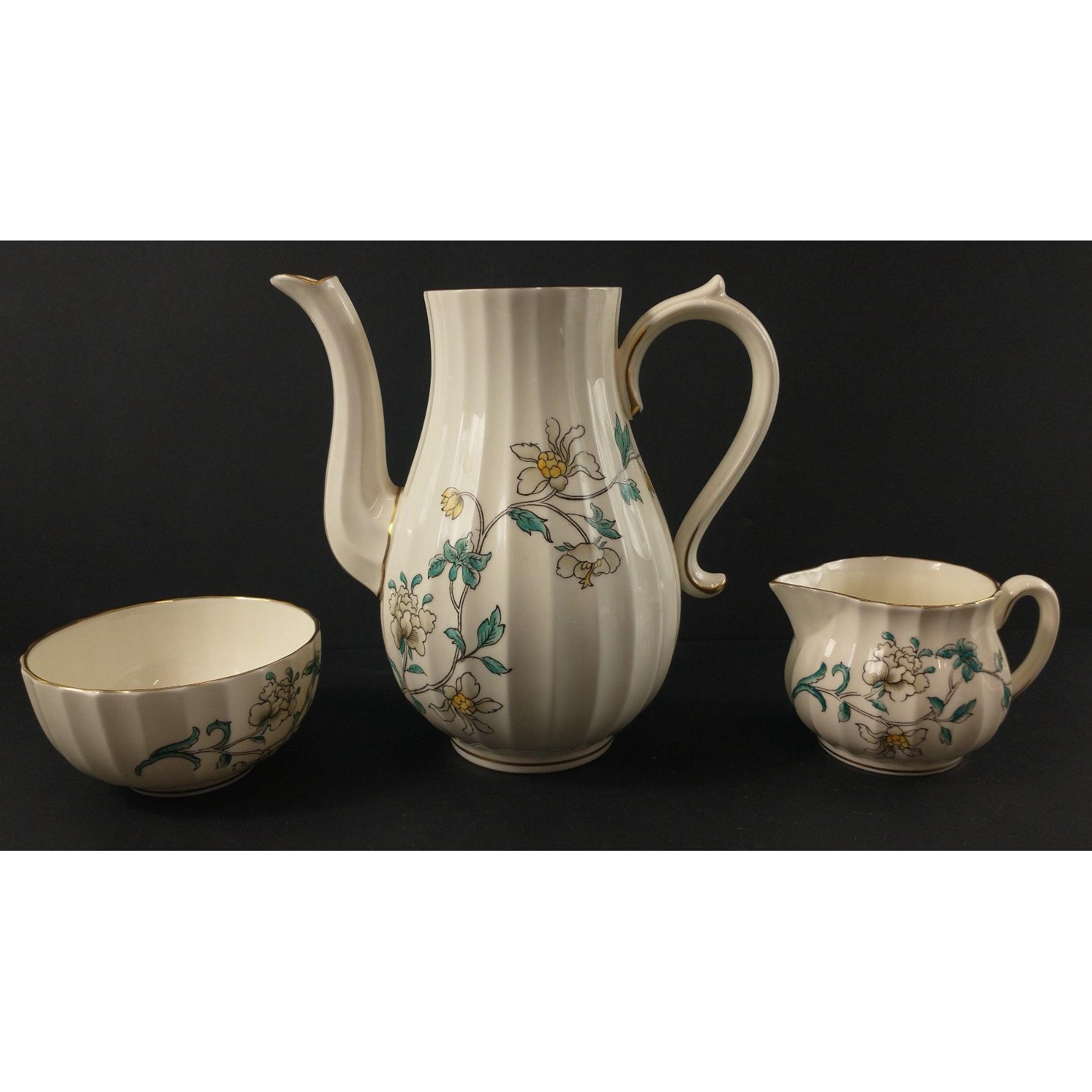 A ROYAL WORCESTER hand-painted fine bone china coffee set in the SPRING pattern to include a coffee pot (no lid),5 cups and saucers, milk jug and sugar bowl Approx 13 pieces