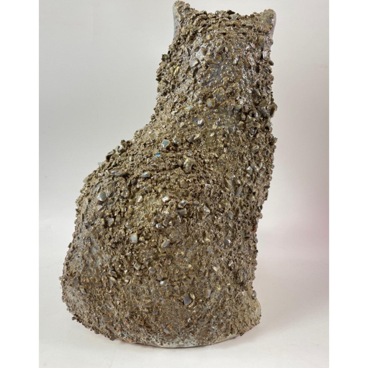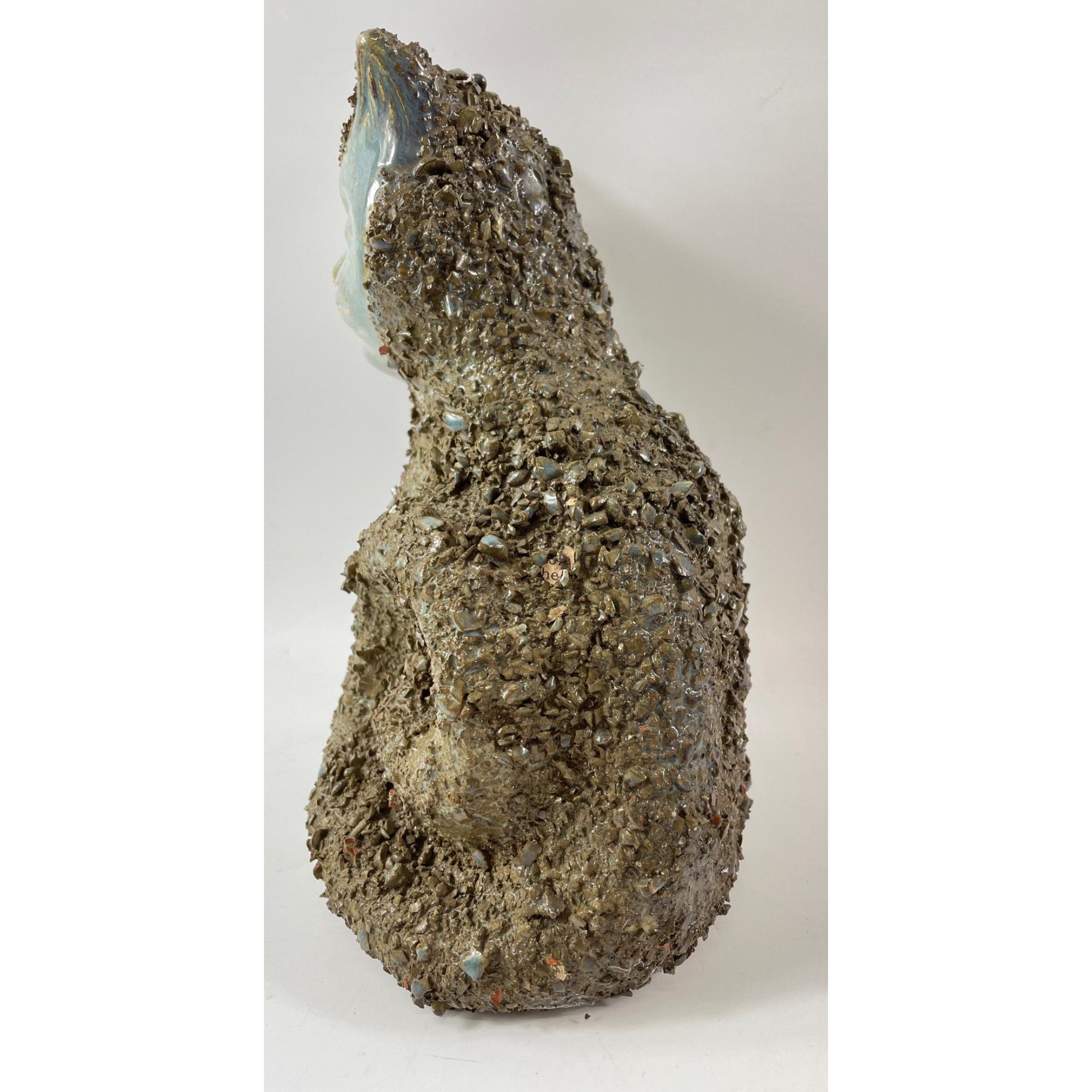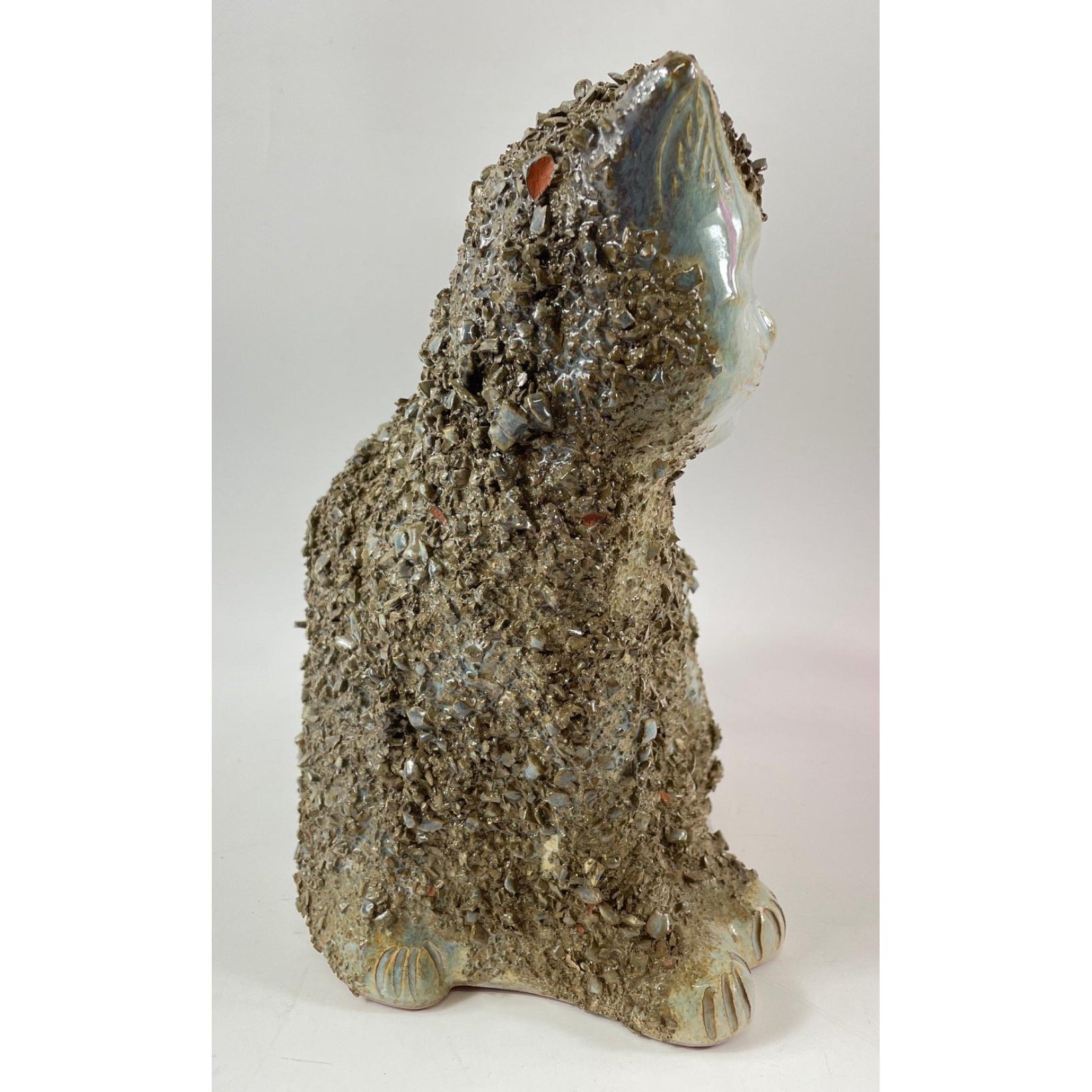 A very unusual blue-faced 'rough finish' pottery cat 22cm tall, small crack to base