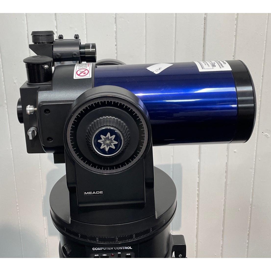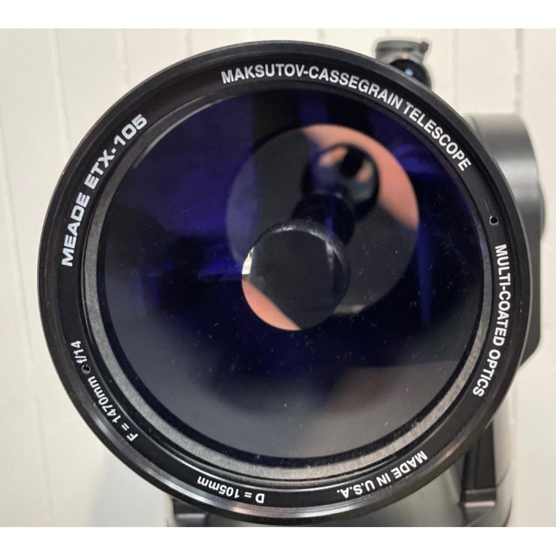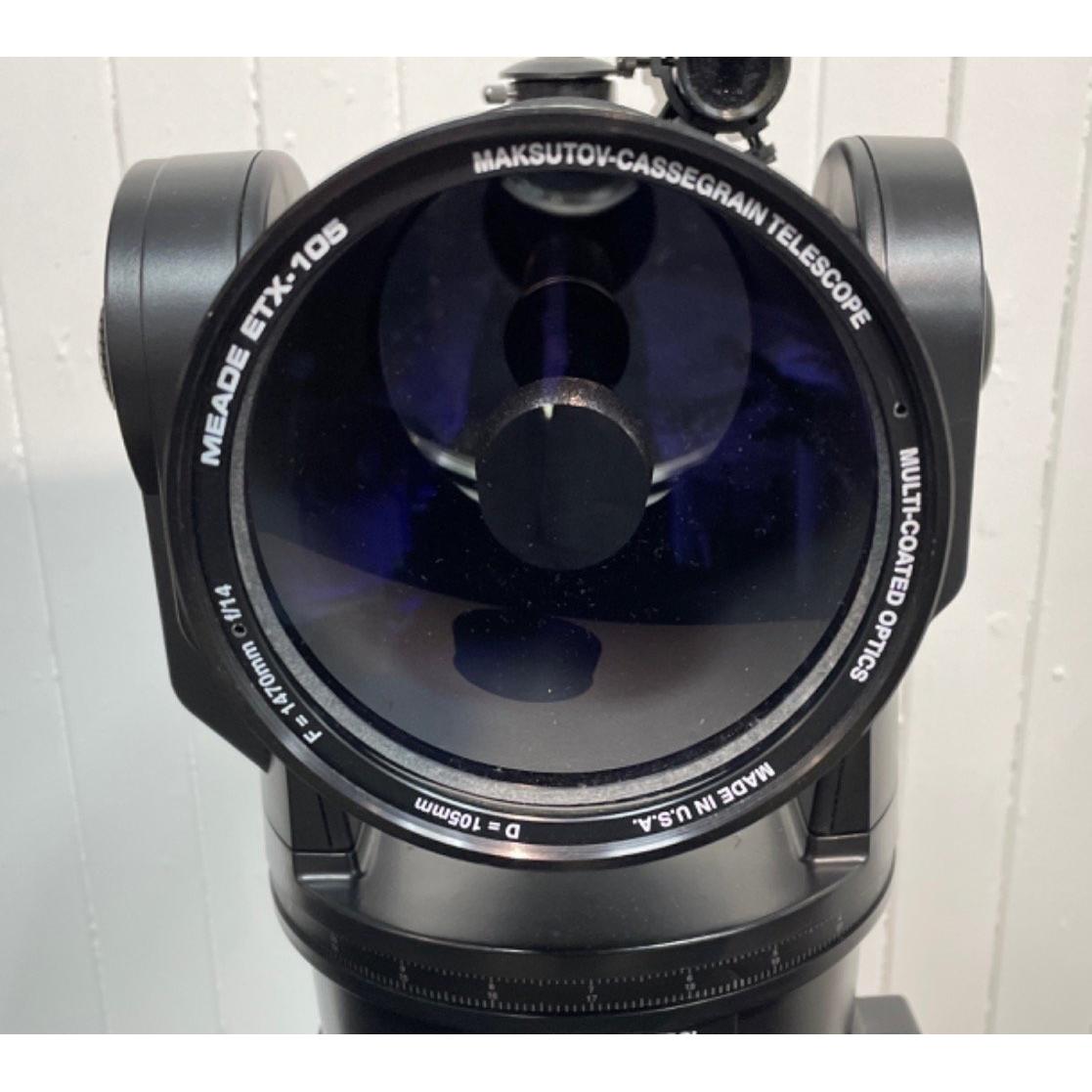A MEADE ETX SERIES TELESCOPE complete with #884 DeLuxe Field Tripod: Optical Tube appx 13cmD x 28cmL probably model ETX-105EC, Tripod with remote control, finder scope with 8x eyepiece, in good condition, includes MEAD carrier bag with: remote control & power supply, 2 boxed eyepieces (15mm and 26mm), operating and service manual, autostar manual, observation guide