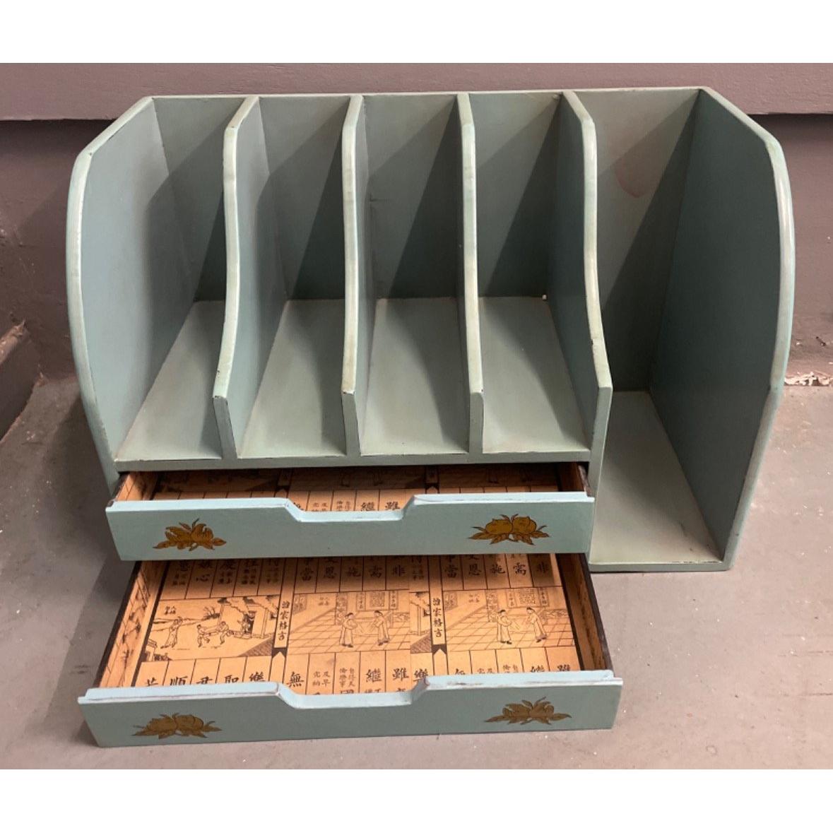An ORIENTAL inspired pastel blue painted lacquered storage wall hanging or table top cabinet - new and unused item in storageW: 46cm approx H: 30cm approx D: 25cm approx