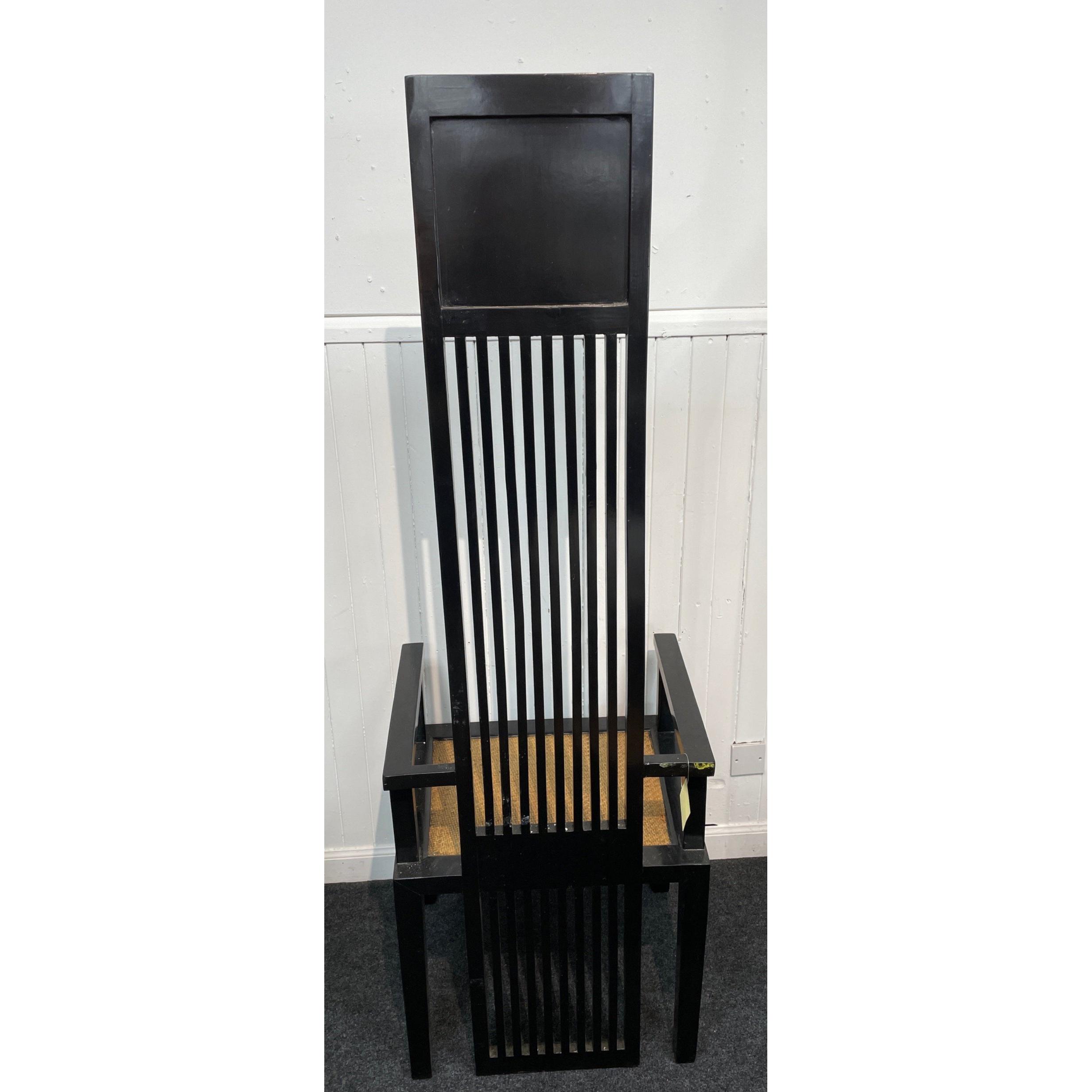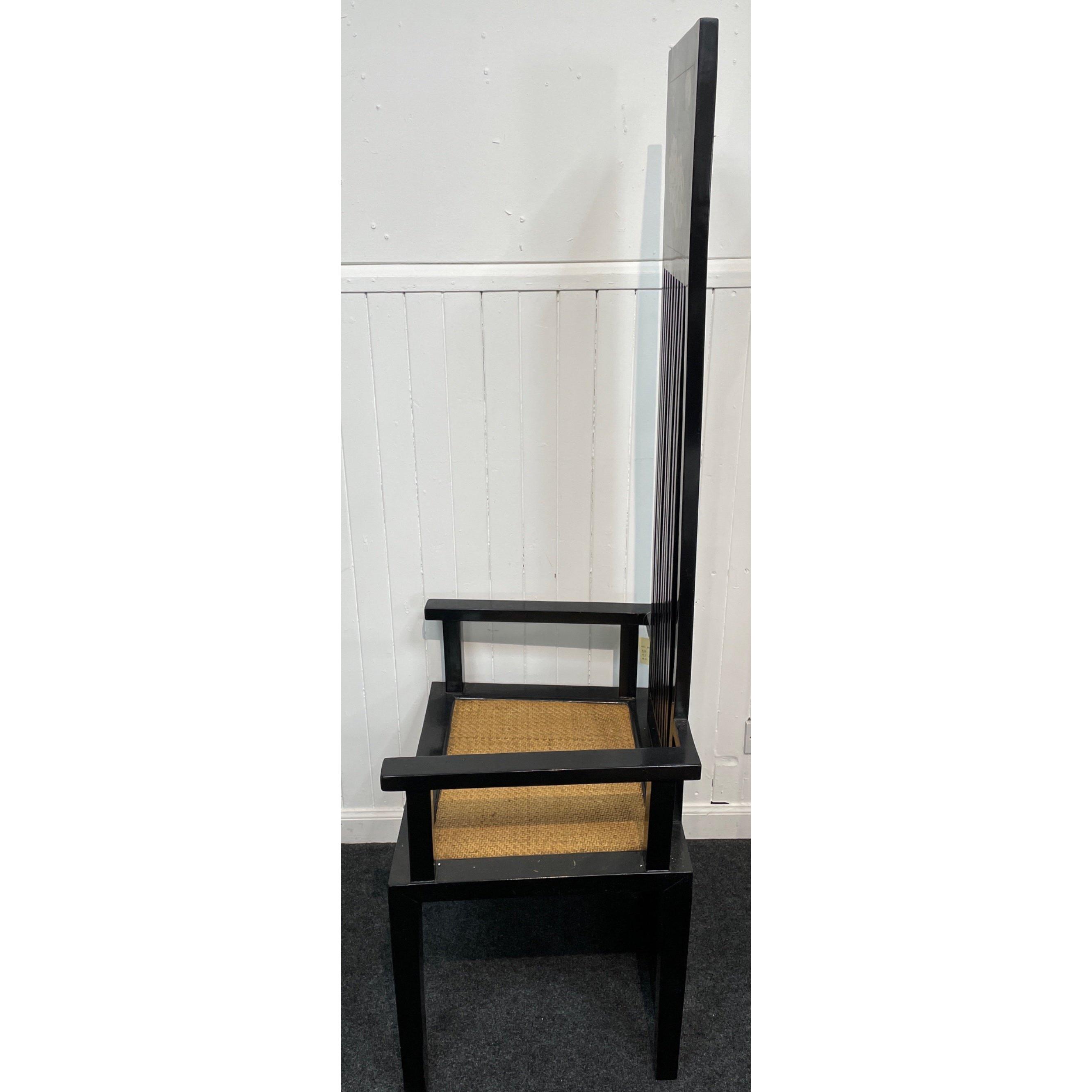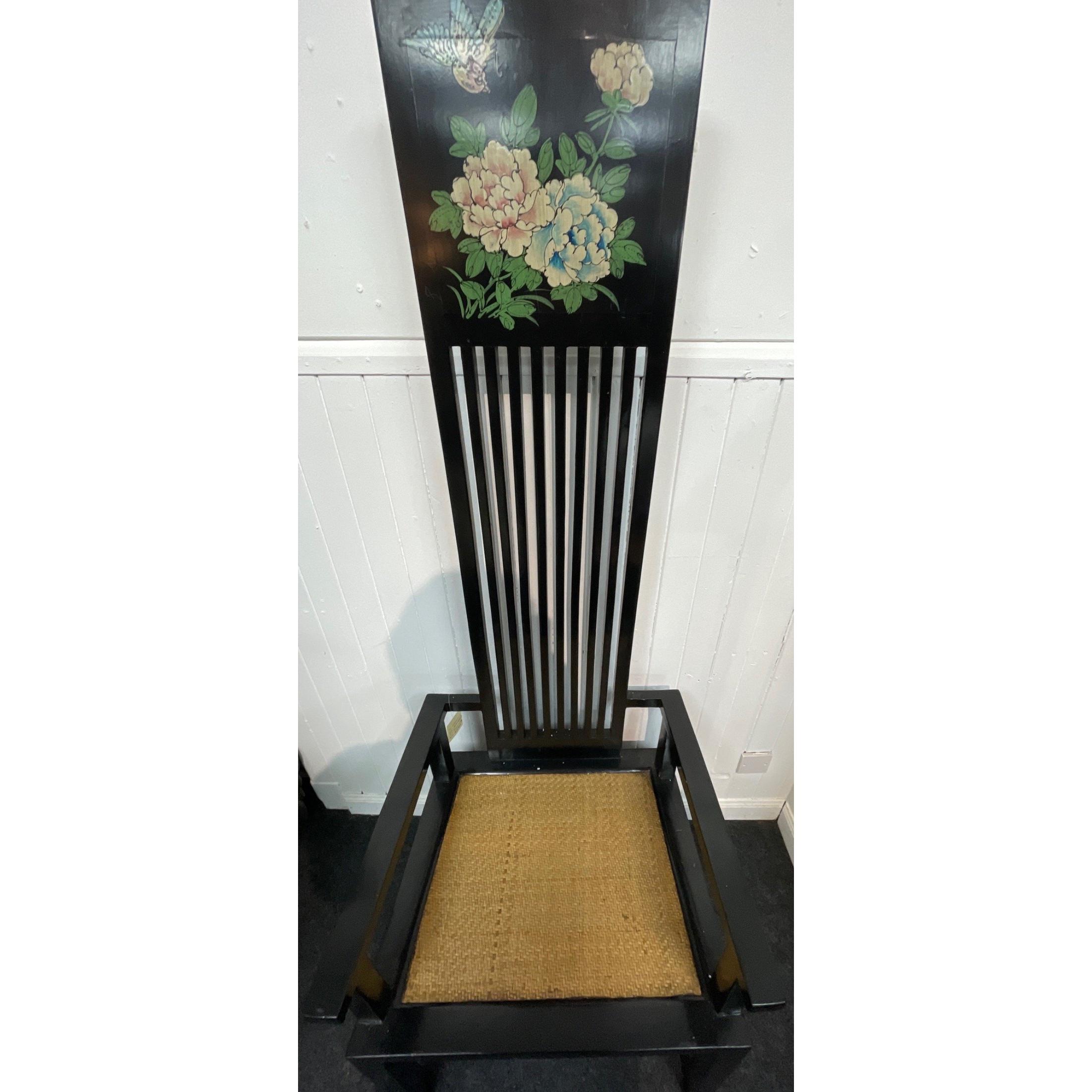 UNUSUAL! An ORIENTAL HIGHLY decorative black lacquered high backed oriental seat with a nice floral pattern - with a nice reed seat-pad - new and unused item in storage