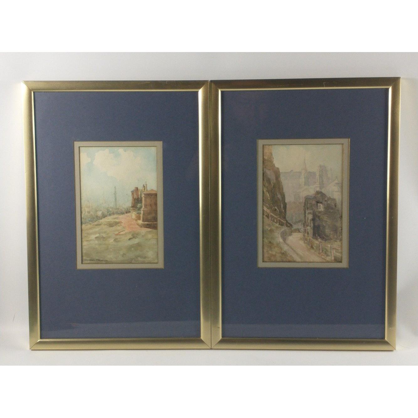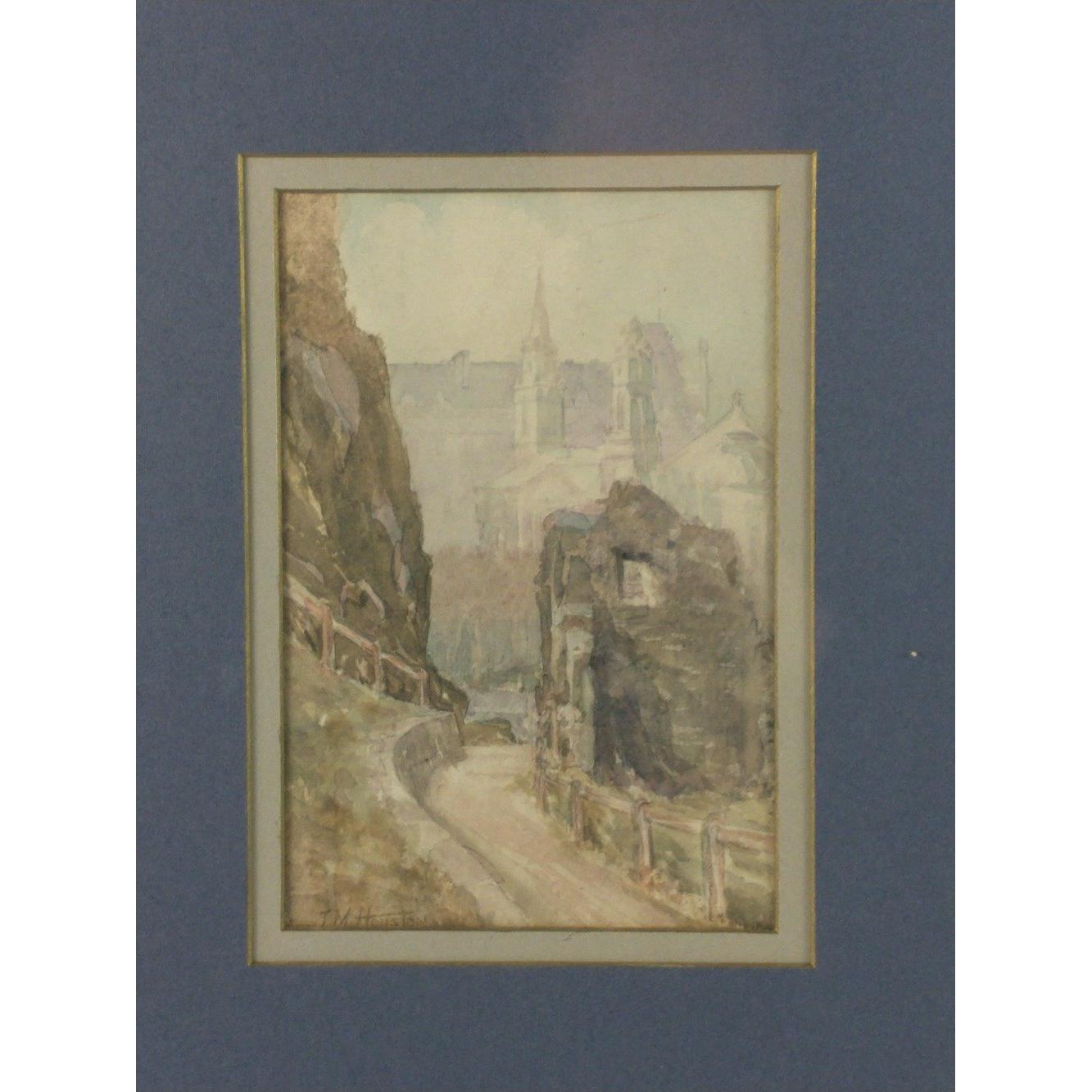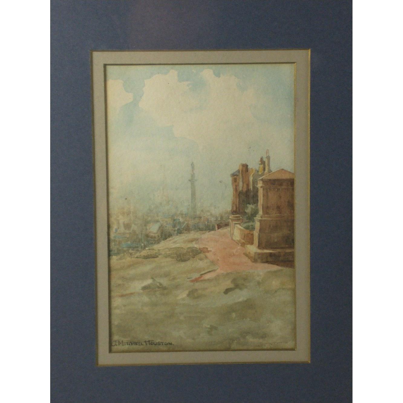 Two watercolours purchased from the Edinburgh Gallery in 1980, the first 'CALTON HILL, EDINBURGH' signed J MITCHELL HOUSTON, the second 'BY THE EASTER ROCK' signed by JM HOUSTON, frames measure 49x34cm, visible work measures 21x14cm