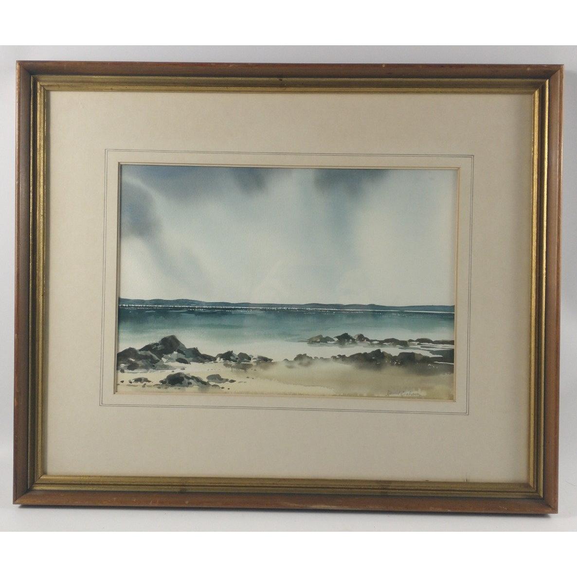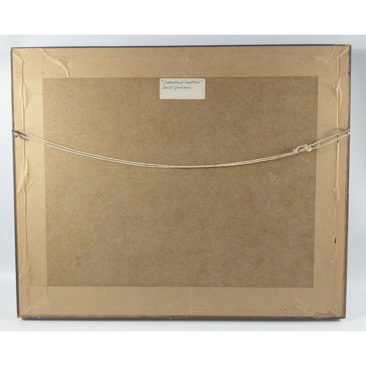 A framed watercolour by DAVID GRAHAM named 'SUTHERLAND COASTLINE', frame size 57x46cm, visible work 36x24cm, additional info, the artist studied at Edinburgh College of Art and now paints full time. Much of his work is inspired by visits to family on Mull. The rugged coastline of Scotland's west cost often features in his work which includes watercolour, acrylic and oil. His work can be divided into a traditional representational style and a second more abstract.