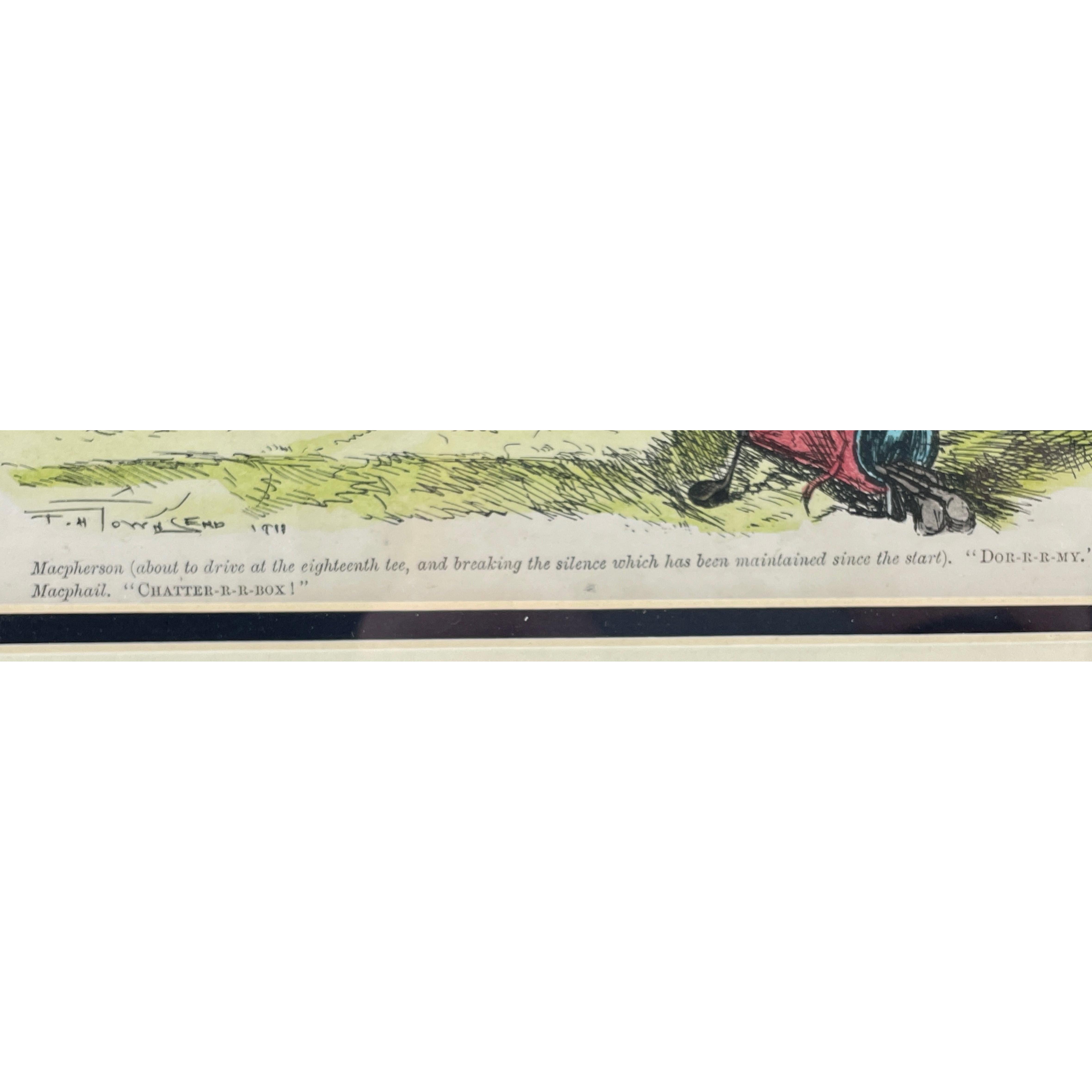 Vintage FH TOWNSEND 1911 colour-wash etching 'About to Drive On The 18th' - dimensions 7" x 5"