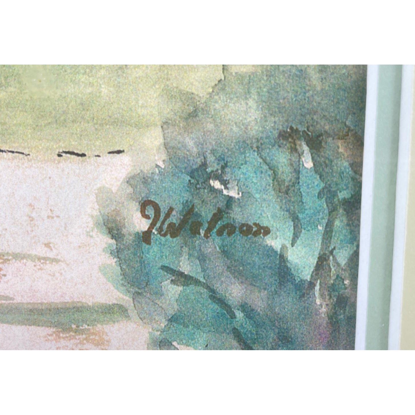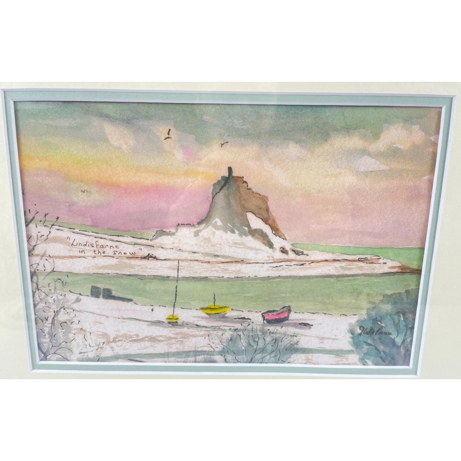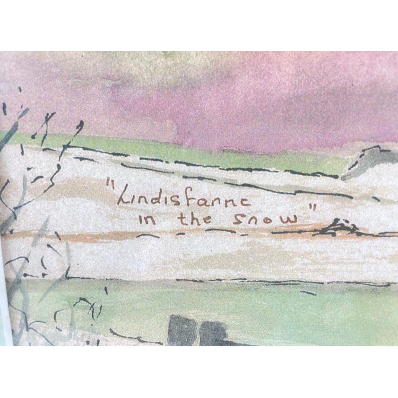Artist WATSON LINDISFARNE HOLY ISLE IN THE SNOW watercolour