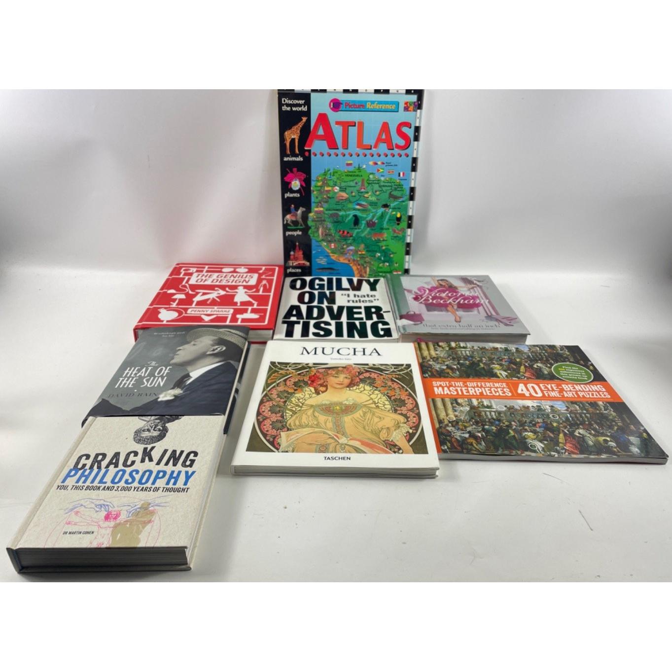 An eclectic mix of books with several on the subject of design, plus philosophy, art, family general knowledge etc