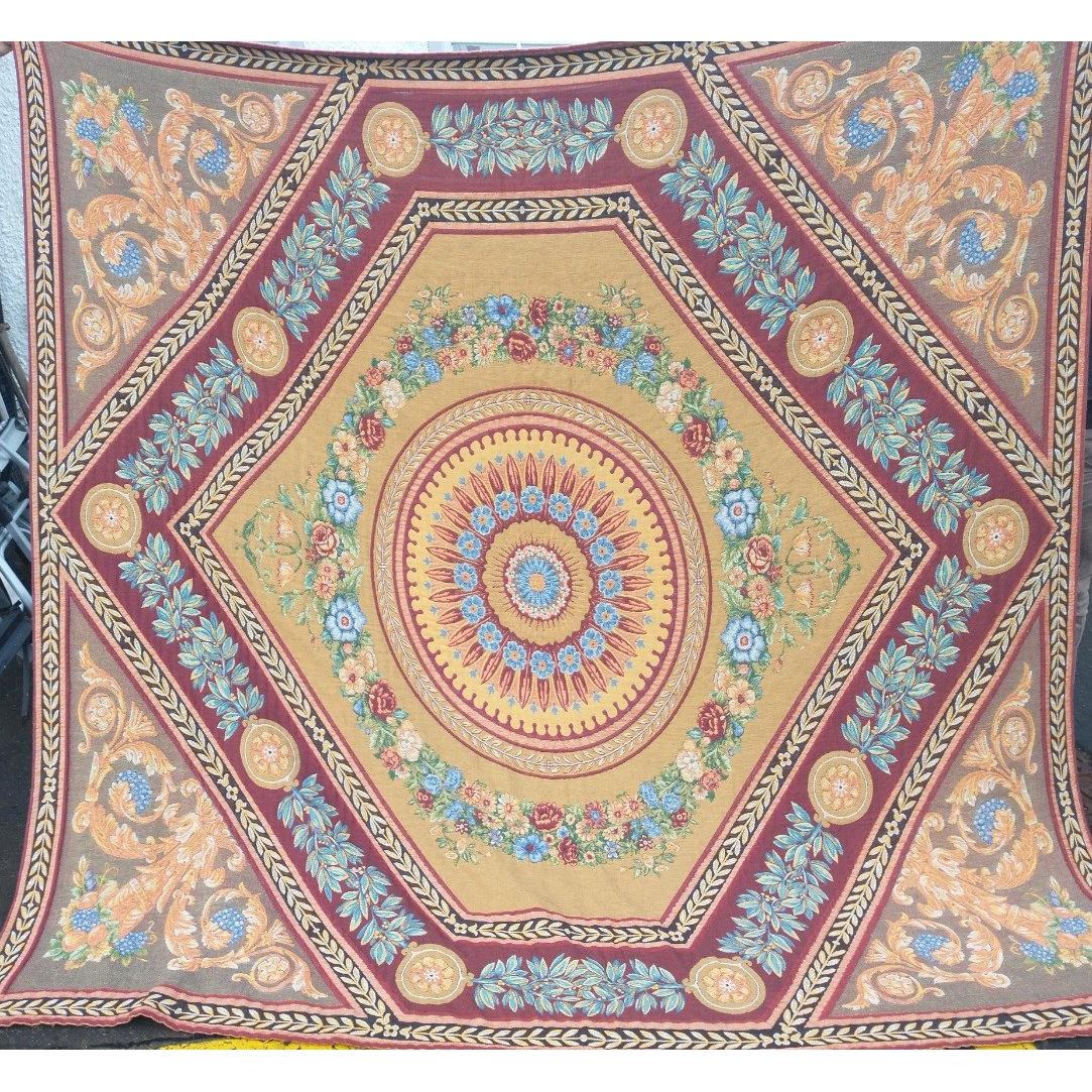 A BESPOKE quality padded reversible throw 240x240cm approx in shades of blue on one side and red and gold on the other with 2 matching pillow casesApprox 3 pieces