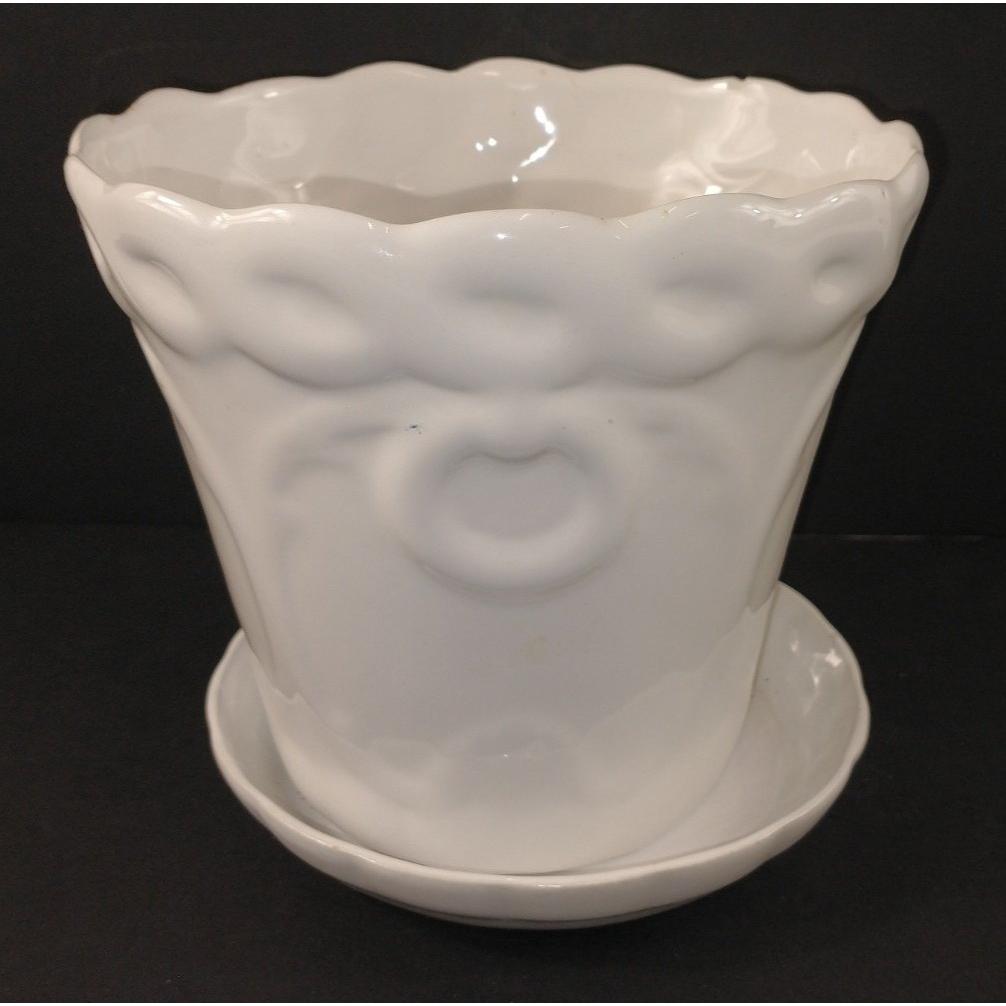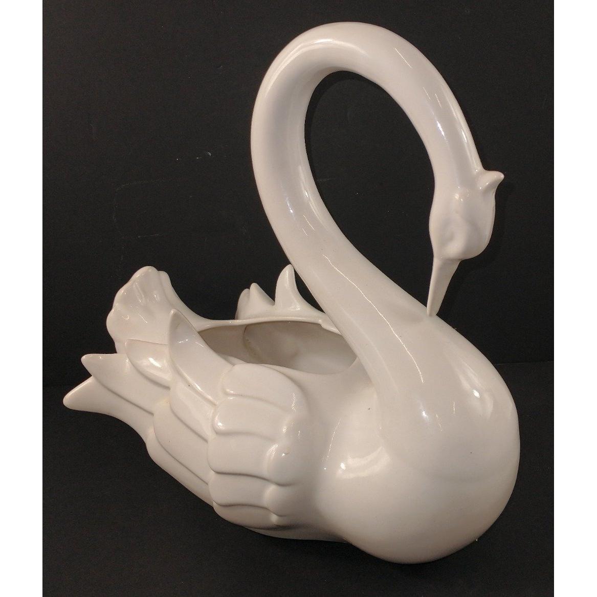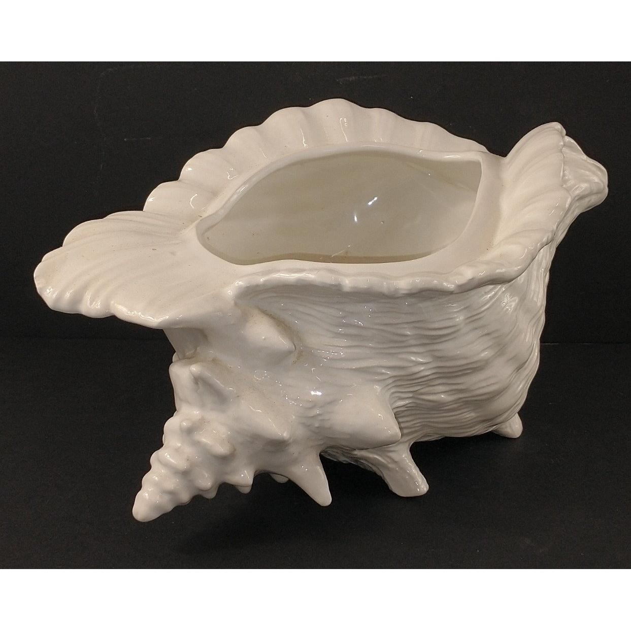 Sale cancelled due to non-payment. Will be re-entered to 12th Feb 22 general auction. Collection of white pottery planters and white pottery ornament. To include Pereiras pheasant ornament (L: 33cm approx) chip on tail, Swan anter by Raimar ( H: 29cm approx), Maryleigh Pottery conch shell planter (W: 31cm approx) and weave design planter (W: 19cm H: 17.5cm approx) with saucer
