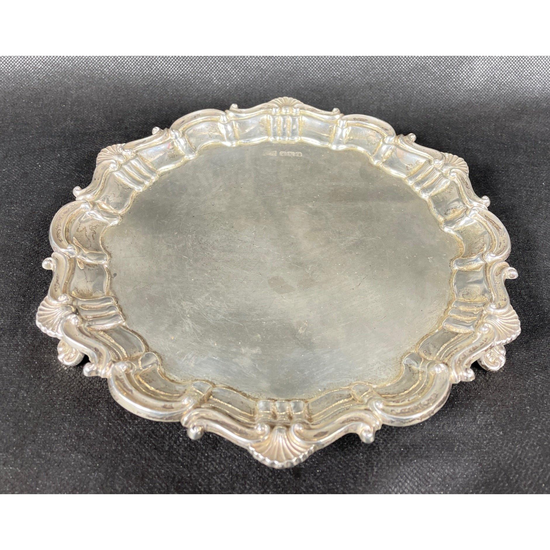 A silver hallmarked, Sheffield 1923, WALKER & HALL 3-footed tray 22cm dia, gross weight 335gApprox 1 pieces