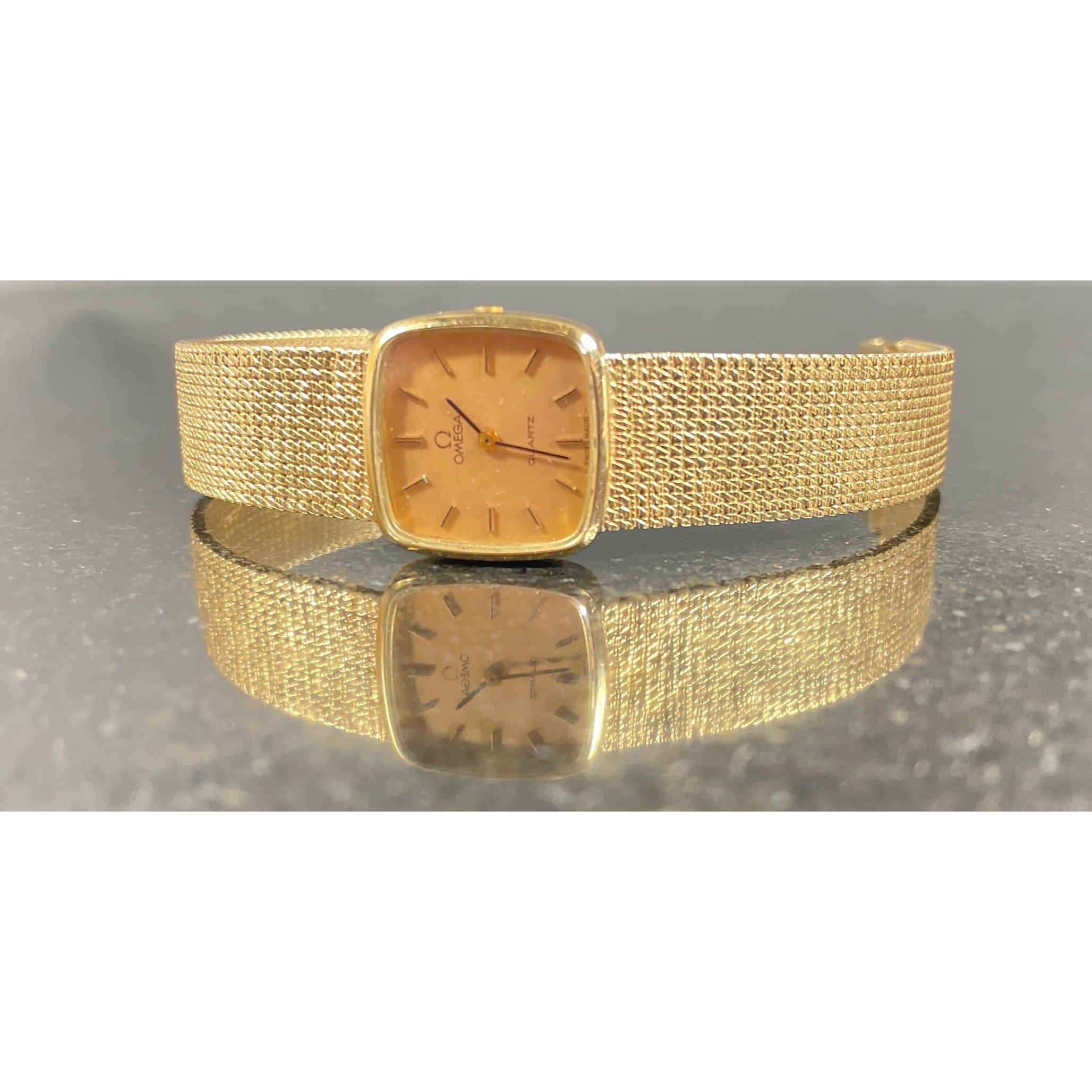 The watch does not have a winder, so it will never catch on clothing, it is adjusted with a pin, and keeps good time, as it is quartz. Wrist bracelet stamped CB 9ct, watch case Omega 750 yellow gold - gross weight including the bracelet 38.07g approx