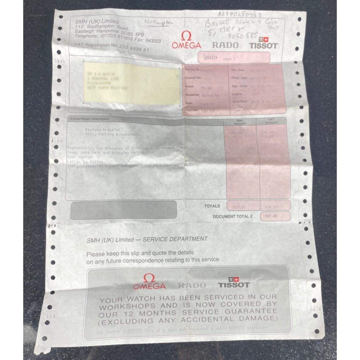 VINTAGE GOLD OMEGA ladies Quartz wristwatch 4EL040 all within ORIGINAL presentation Omega box, with box purchased on 03/02/1990 Owen & Robinson plc Bond Street Leeds, with guarantee stamp and old receipts - the outer grey leather box is worn -(probably sticker removed at one point! - with also outer white 'Significant Moments' Omega strap-line!