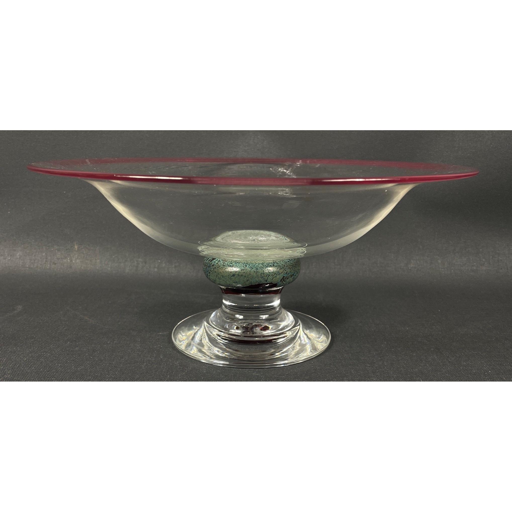 A large (28cm dia) glass tazza with a promegranate coloured rim from the PHOENIX GLASS STUDIO of British ColumbiaApprox 1 pieces
