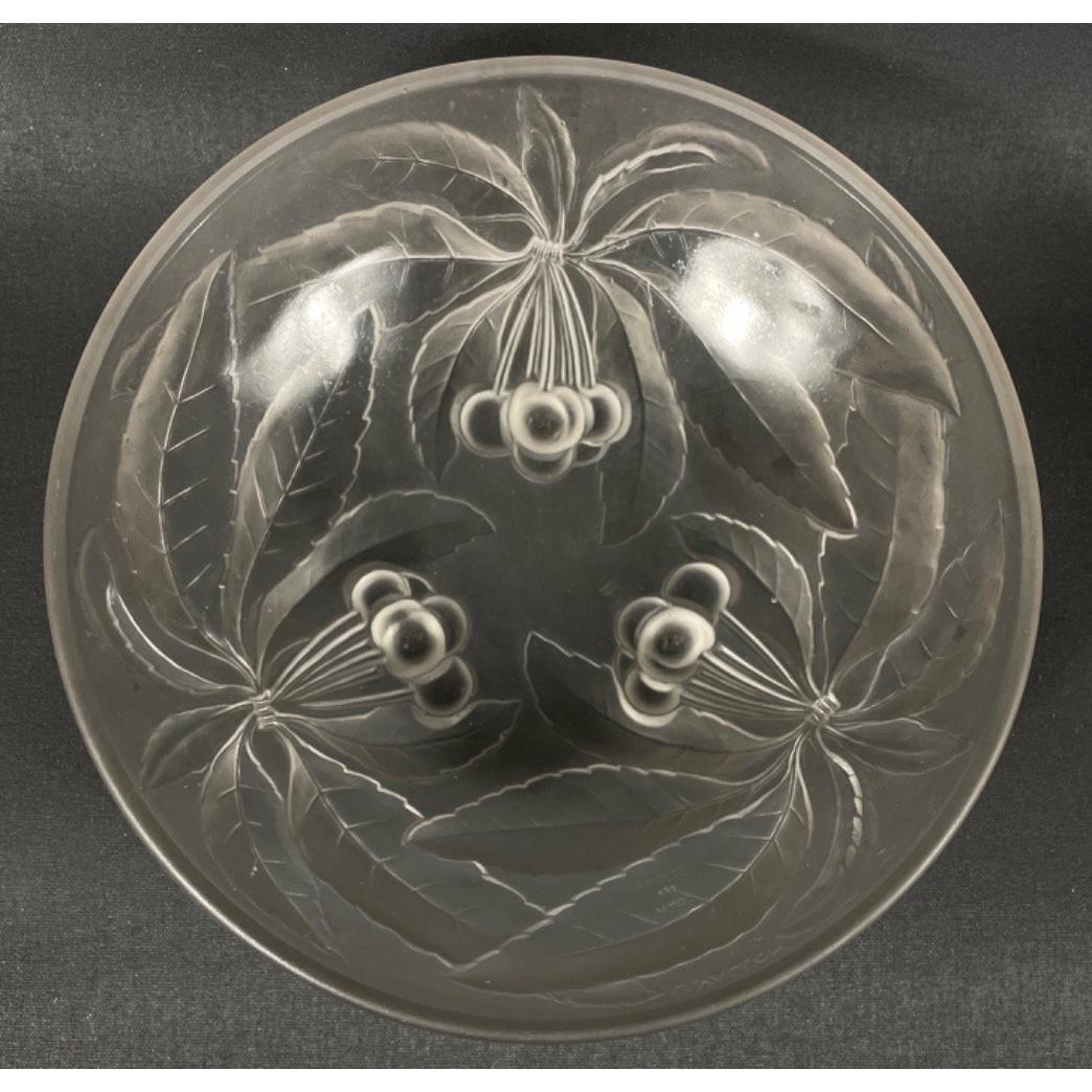 A rare vintage G VALLON OPALESCENT GLASS BOWL with moulded cherry decoration. Moulded signature mark. 7cms in Height, 23.5cm in DiameterApprox 1 pieces