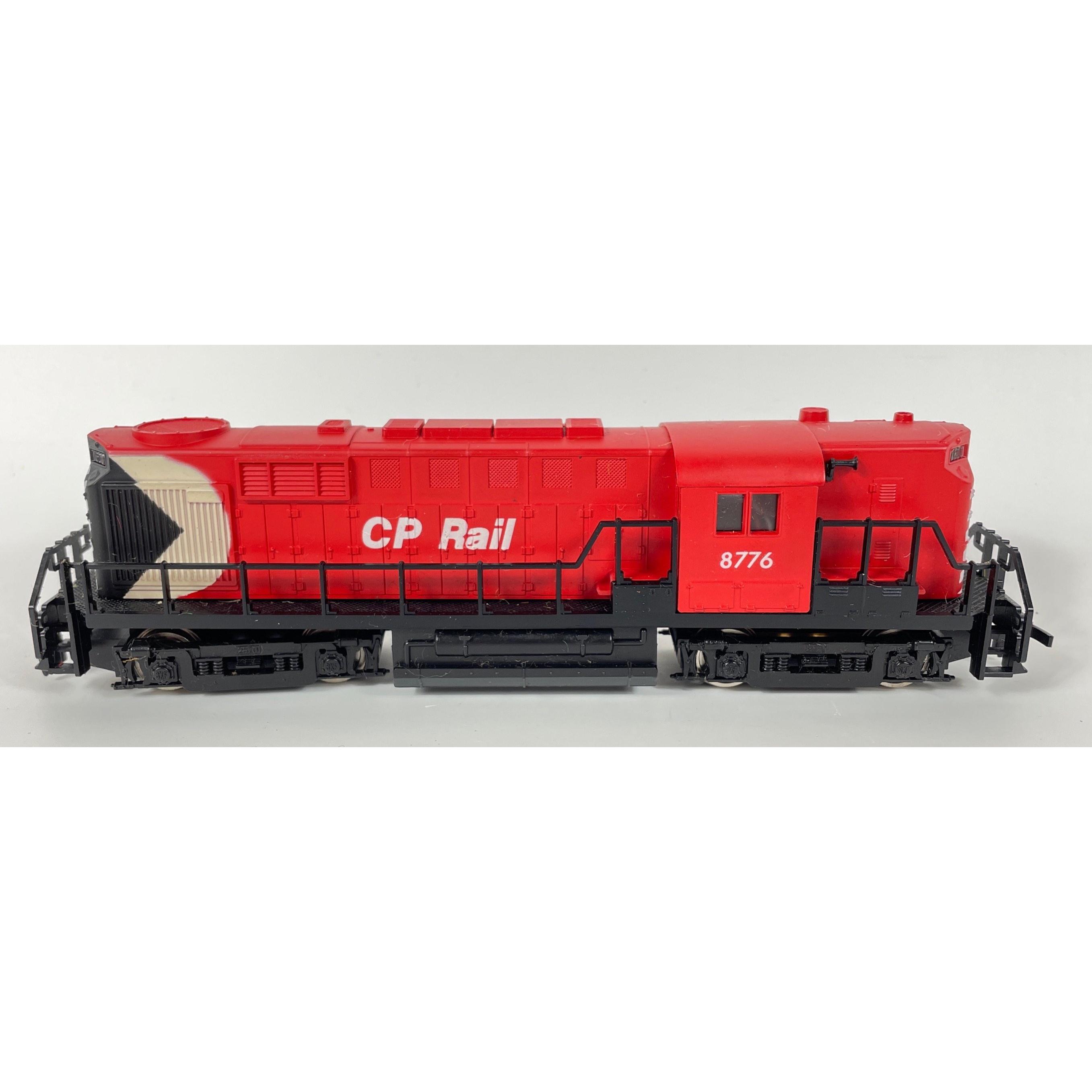 An HO CANADIAN PACIFIC POWERED LOCO 8776 by ALCO in non original box with 7 assorted carriages and rolling stock. All in good order. From a large model railway layout and collection well cared for. Complete used but untested.