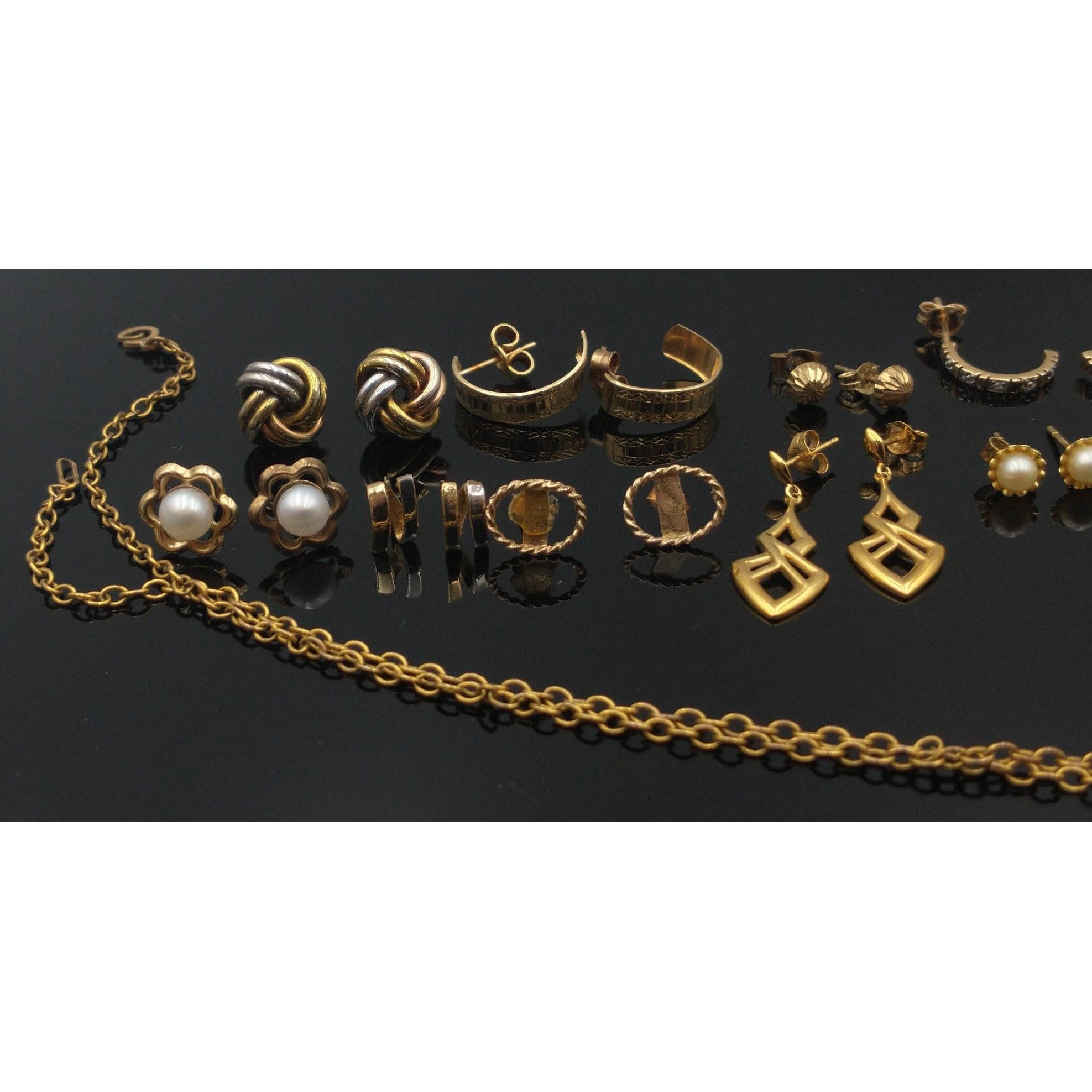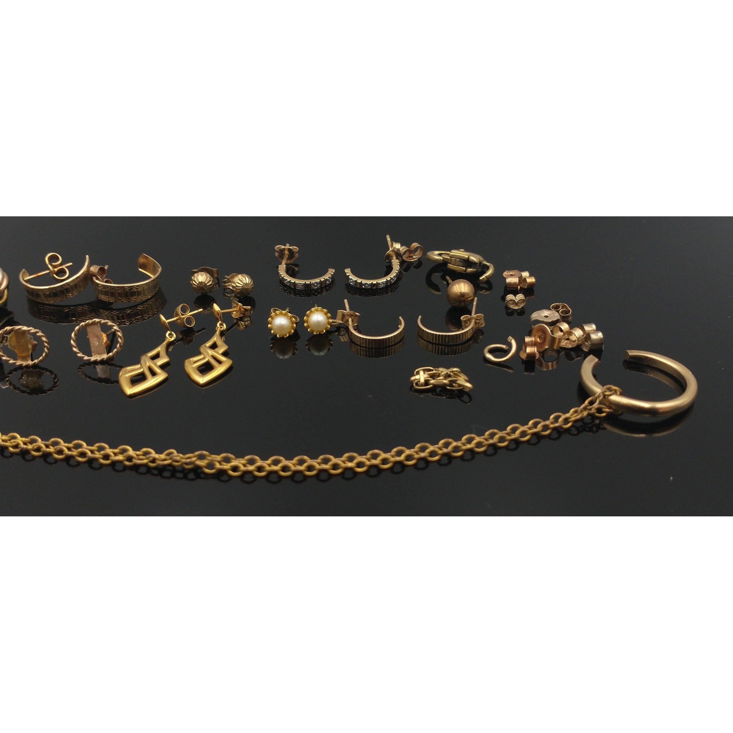 Quantity of scrap 9ct gold gross 15g with a two small pairs of Pearl earrings etc