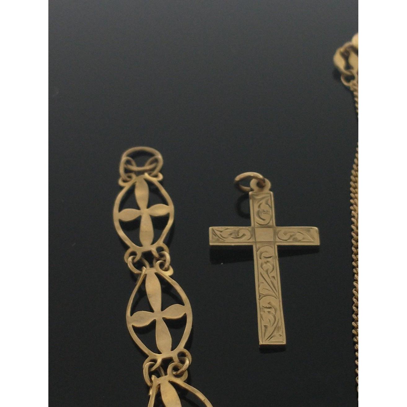 Mixed yellow gold 9ct and 375 stamped bracelet, pendant, a religious cross, a small identity bracelet 6.9g in total