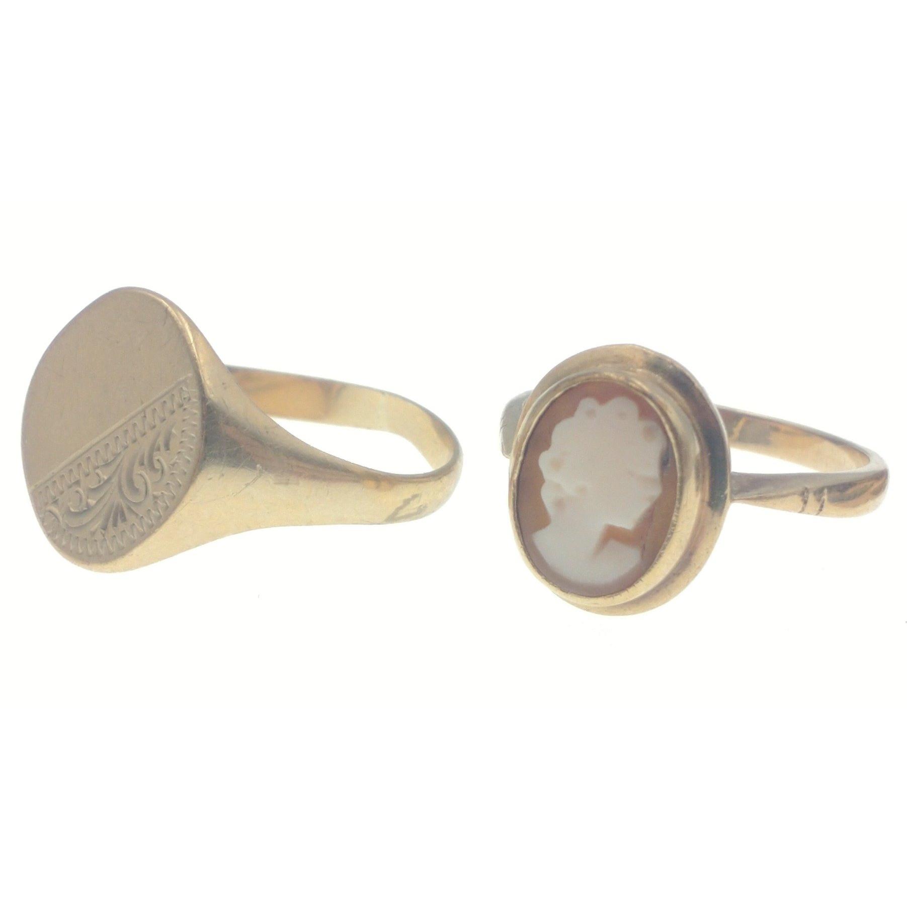 A collection of 5 375 and 9ct yellow gold rings total weight 9.2g approxApprox 5 pieces