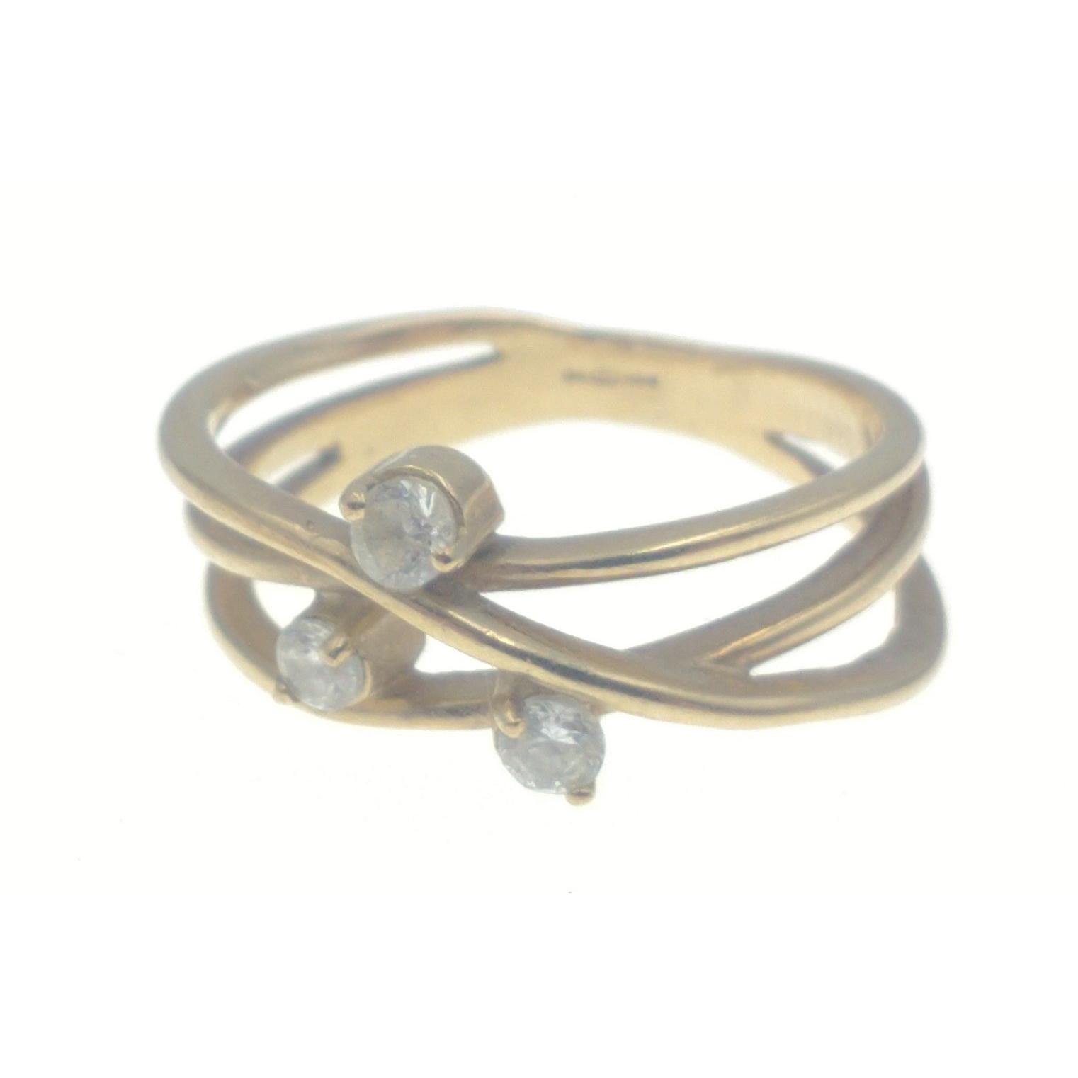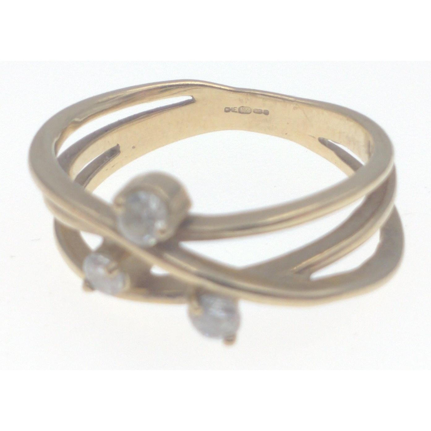 An ISLE OF ARRAN fashioned 375 stamped yellow gold ring with three small white stones gross weight 3G approx