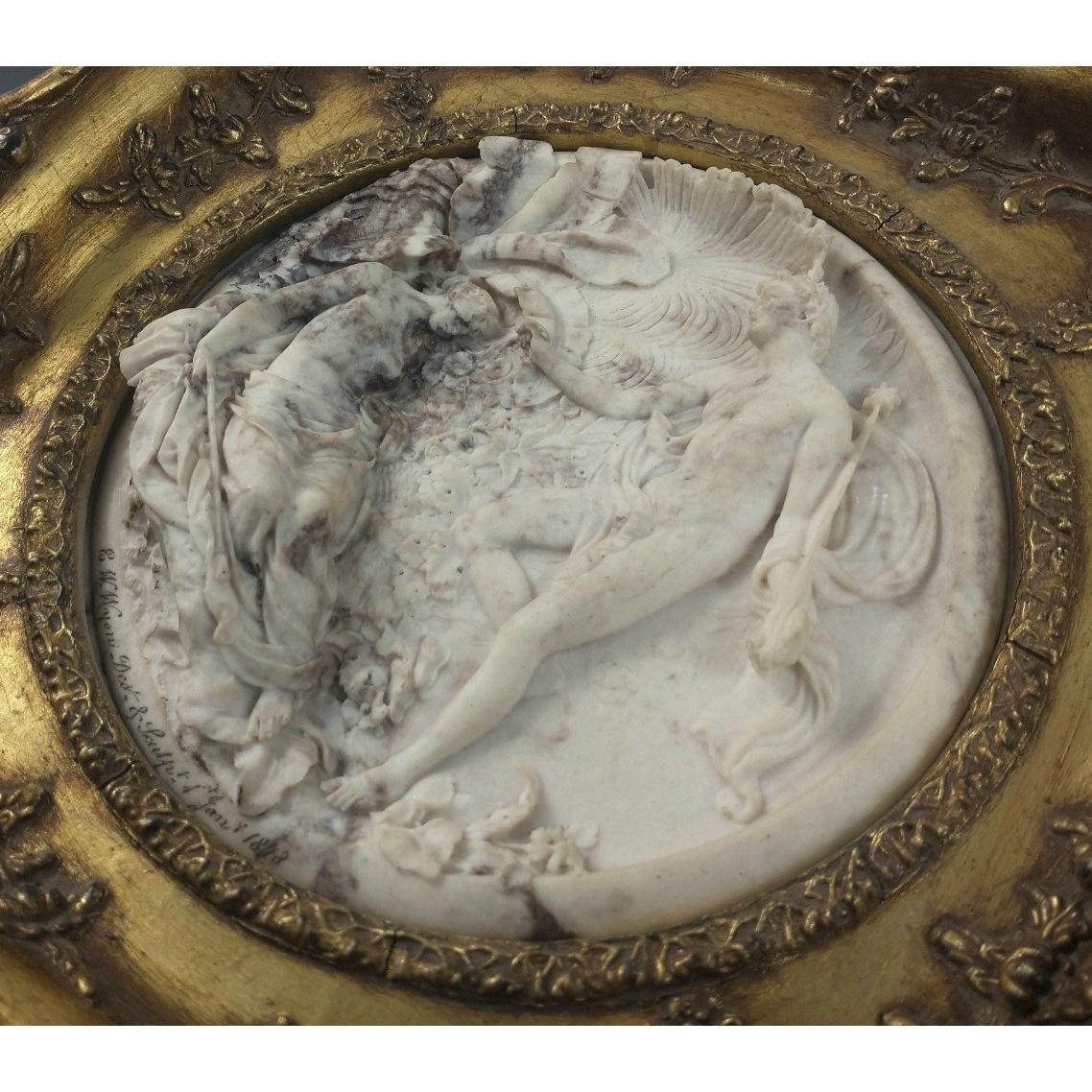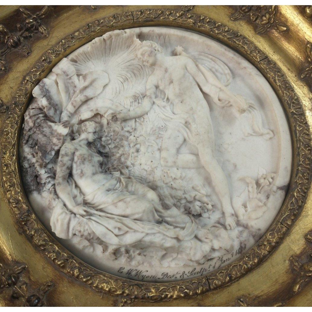 EW Wyon reproduction marble plaque 1848 Shakespeare scene roundel of Oberon and Titania within a pretty gilt frame - dimensions 29cm square(frame size) 18.5cm diameter approx - a beautiful piece of art!