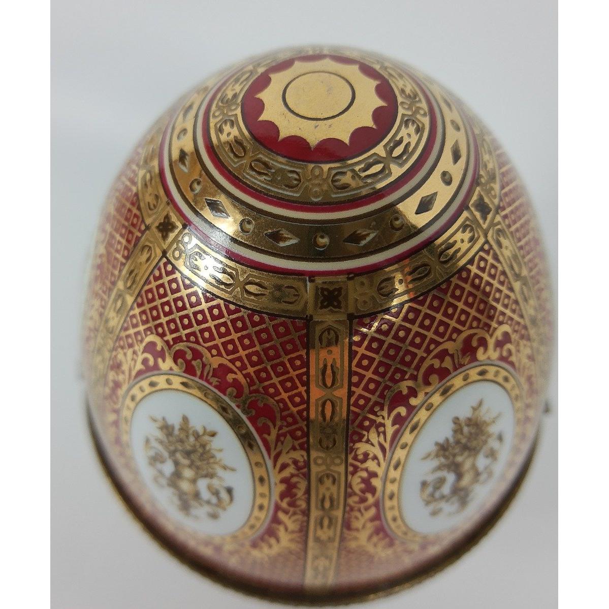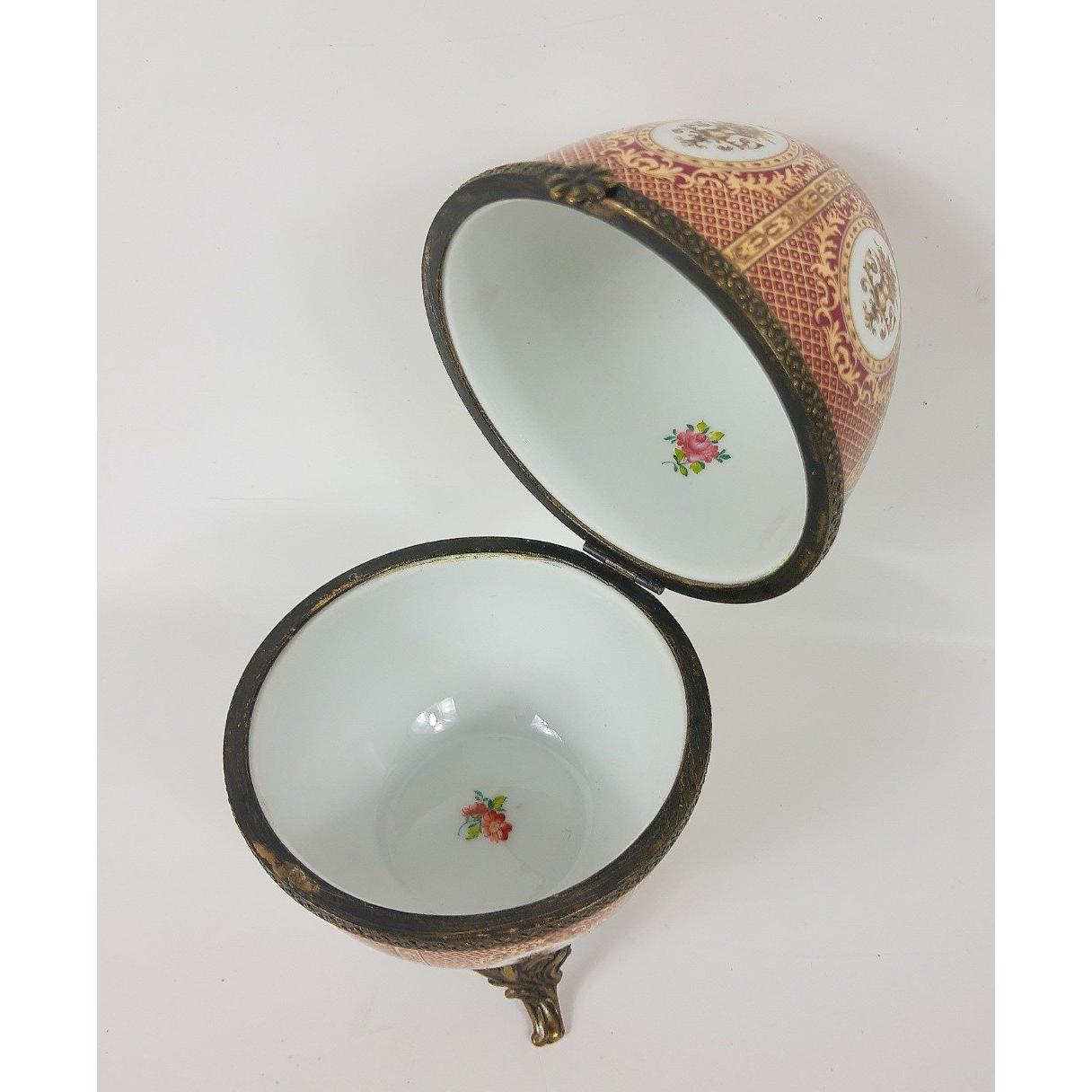 A ceramic porcelain Easter Egg on three feet, stands 15cm high