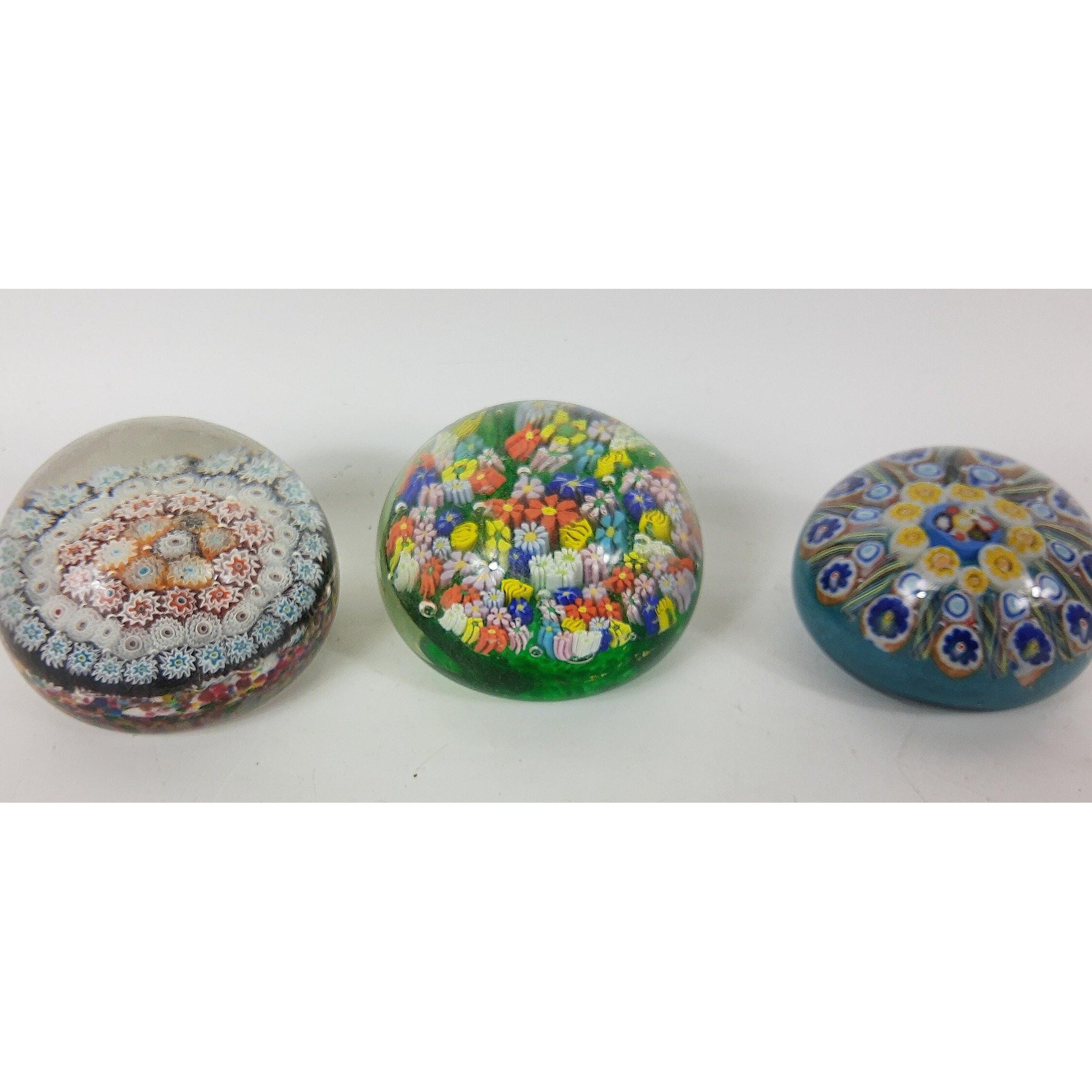 A collection of ten paperweights mainly glass millefeuille style includes one unusual resin weight with a crab captured withinApprox 10 pieces