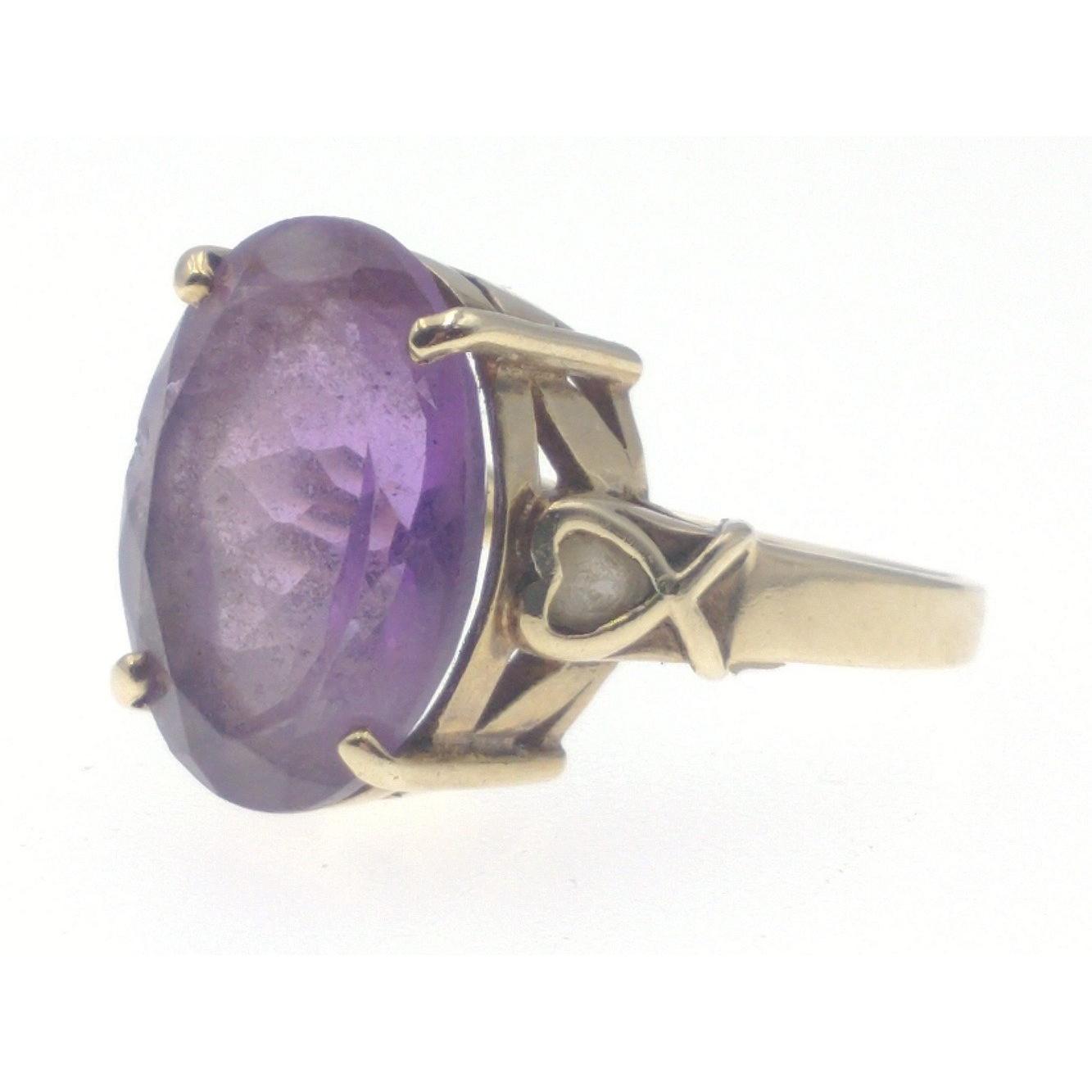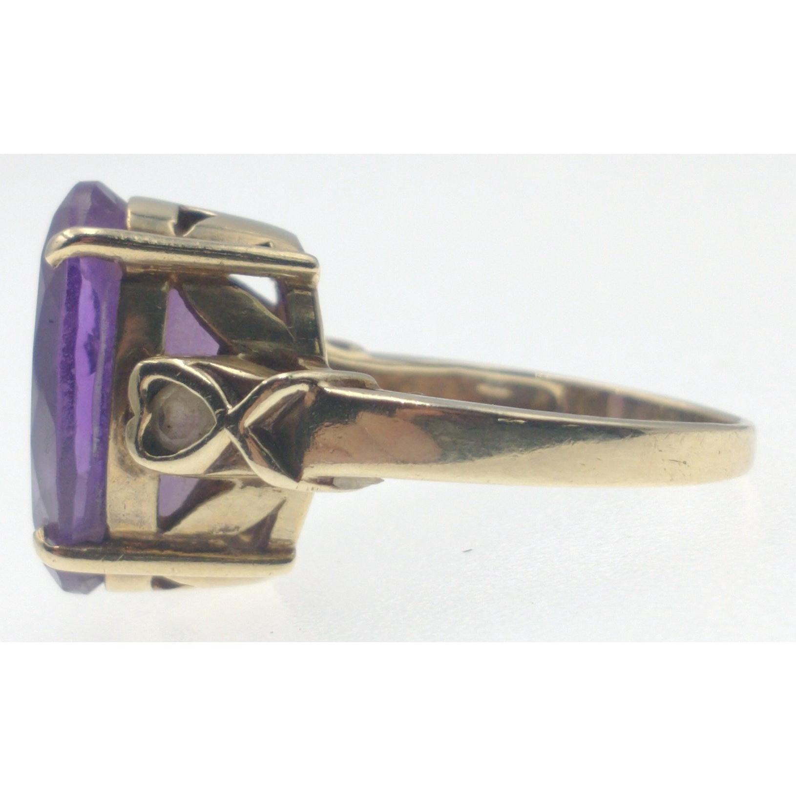 A large 375 stamped yellow gold ring with a GARGANTUAN purple amethyst stone measuring 1.5cm x 1cm approx!! Gross weight 6.06g and ring size OApprox 1 pieces
