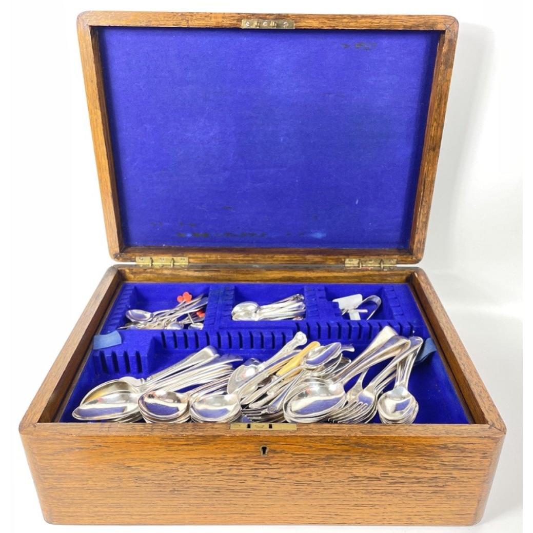 SUPER QUALITY! A large wooden cutlery canteen in three velvet layers 45x34x17cm filled with various cutlery many EPNSApprox 1 pieces