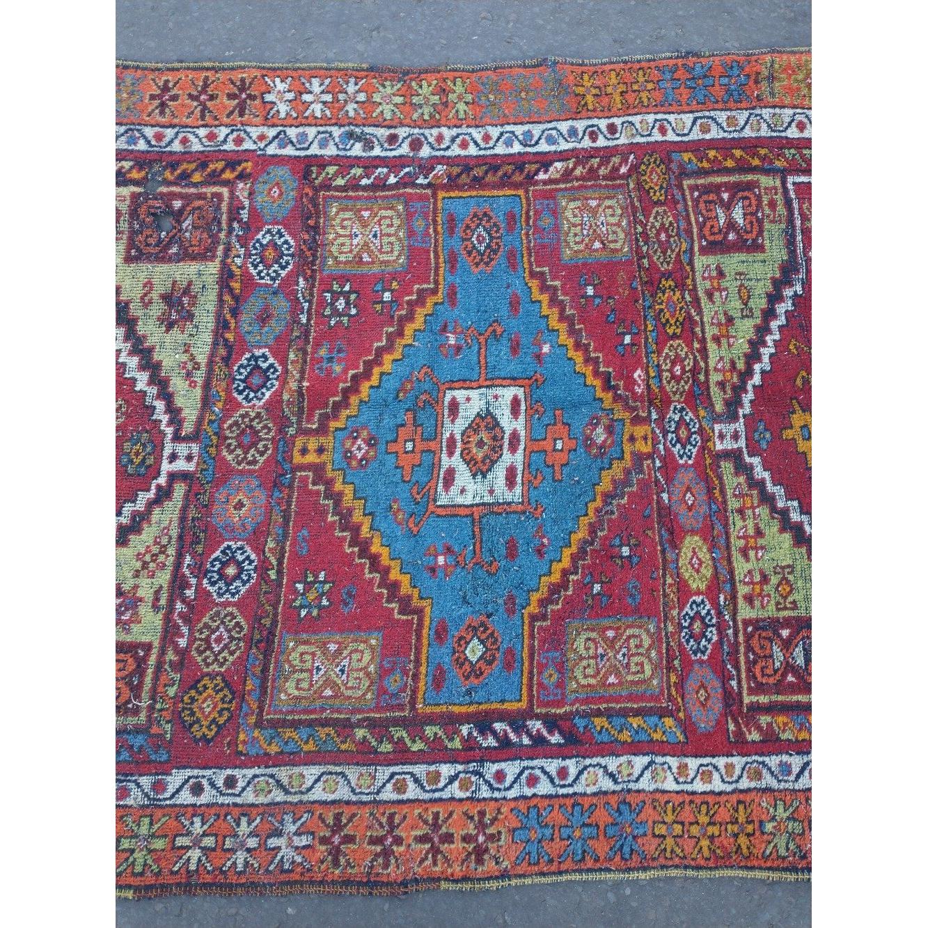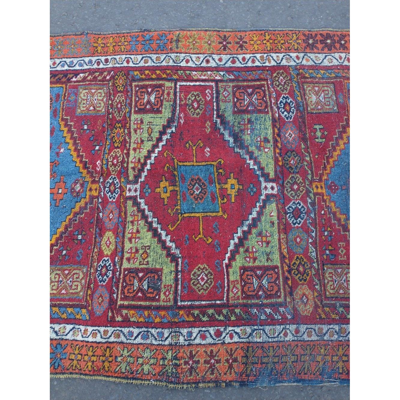 A VINTAGE c1930's 10ft x 4ft Large Size and VIBRANT coloured Oriental Herati Mashwani Area handmade carpet - the carpet has two large holes approx 10cm diameter, one in the border and one towards the edge of the carpet - there are also a few other smaller holes - but these in my opinion do not detract from this carpet's beauty!