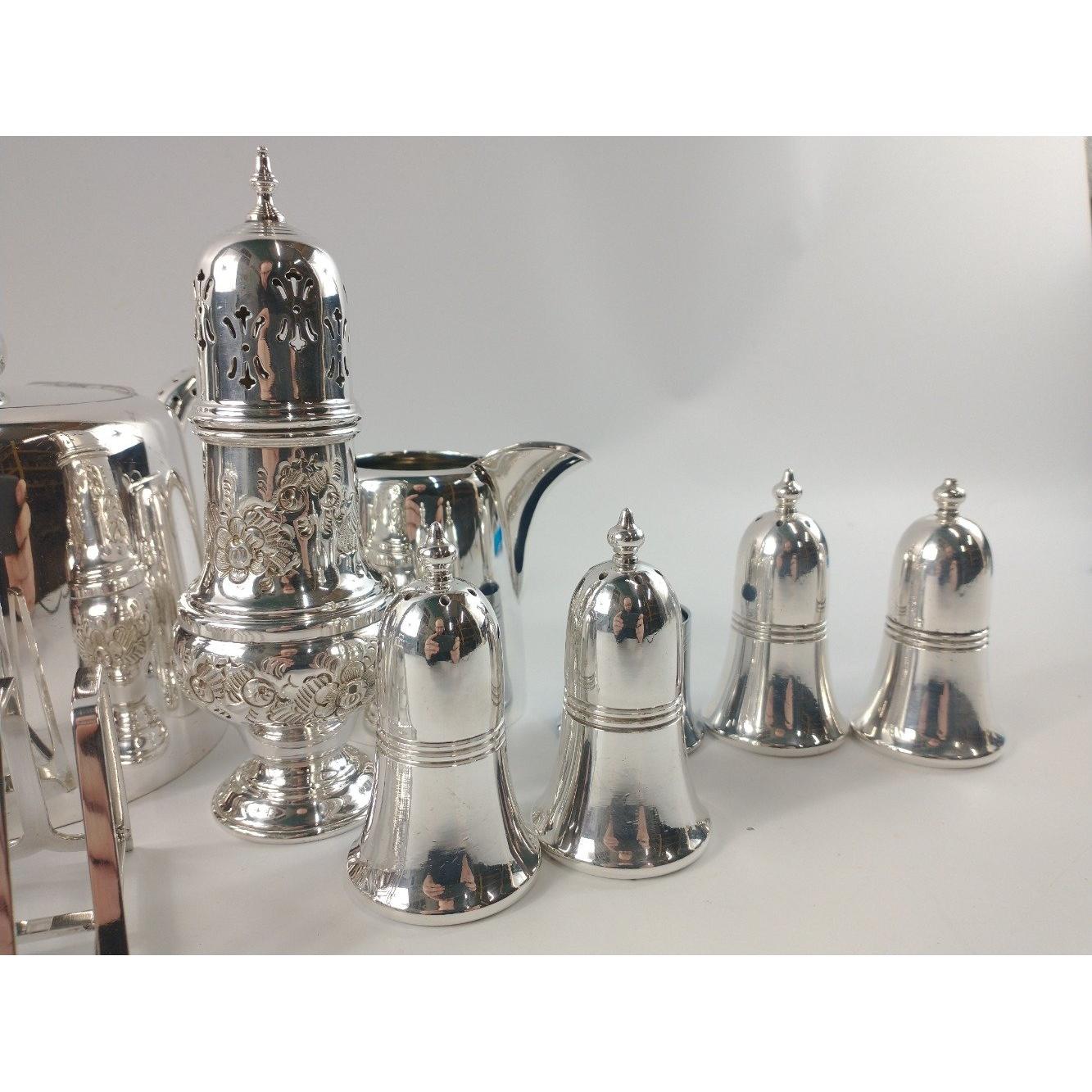 A collection of EPNS to include a VINER'S sugar shaker (17cm high), a WALKER & HALL EPNS 2pt teapot, 1.5pt coffee pot, 17oz sugar bowl, 9oz jug, plus 2 cruet sets by 'MS', a mustard pot with liner and a toastrack by FC & Co