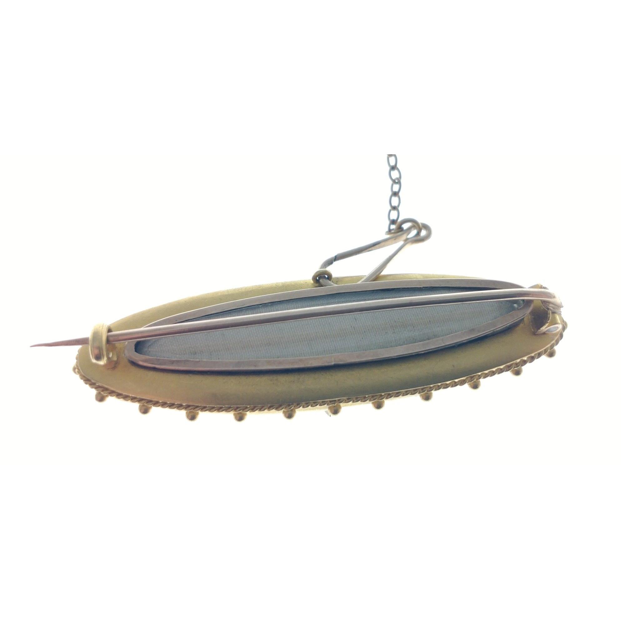 A VICTORIAN 15ct(from a 1989 jewellers valuation) and JET with tiny seed pearls mourning brooch gross weight 5cm in length approx gross weight 10.05g approx